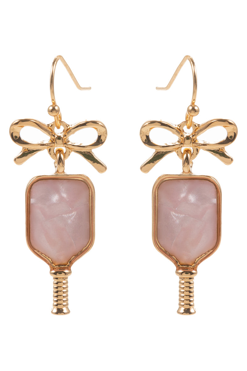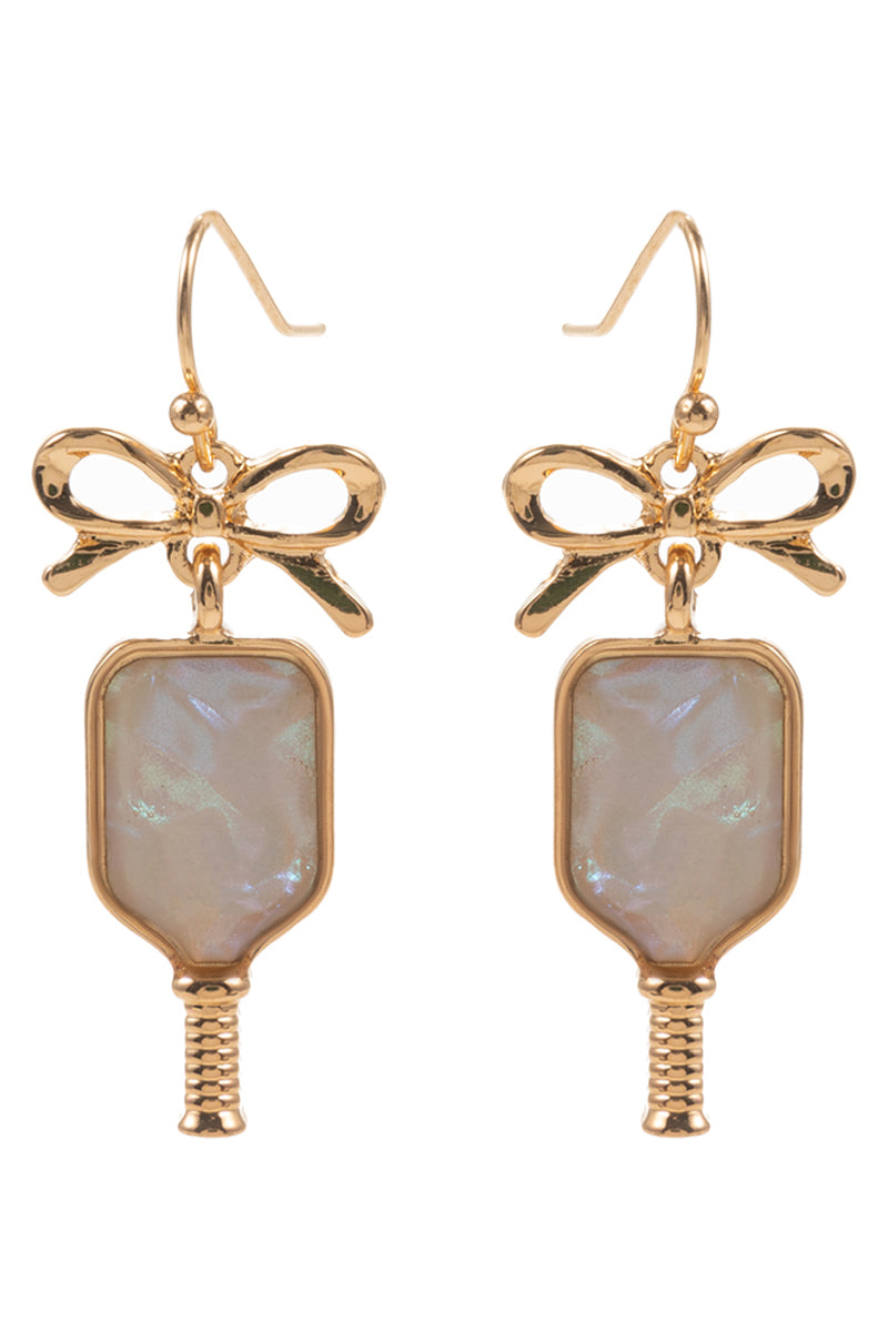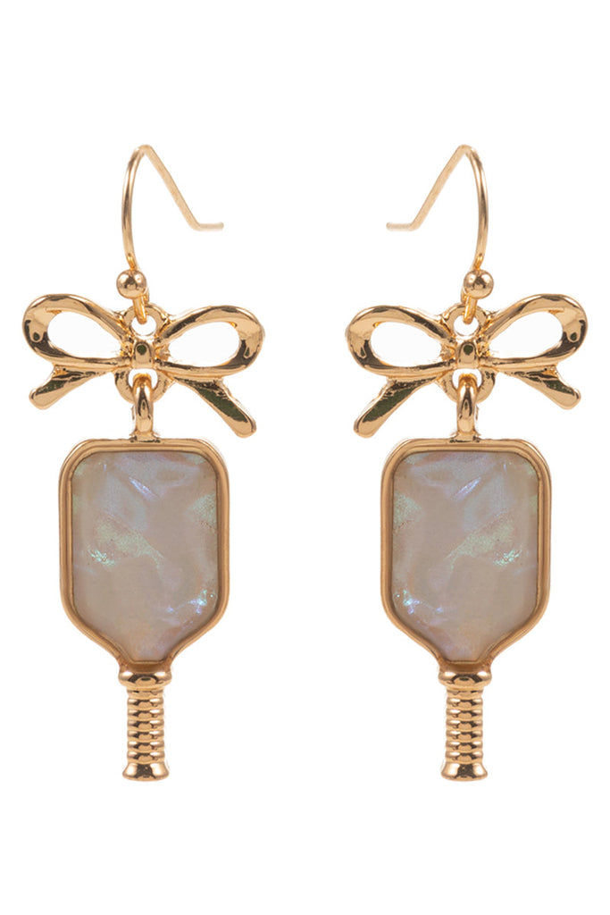 Sports Pickleball Shimmery Paper Bow Hook Earrings