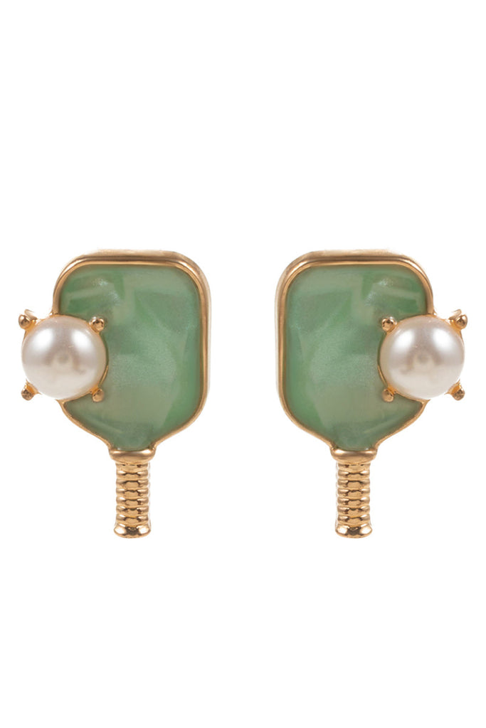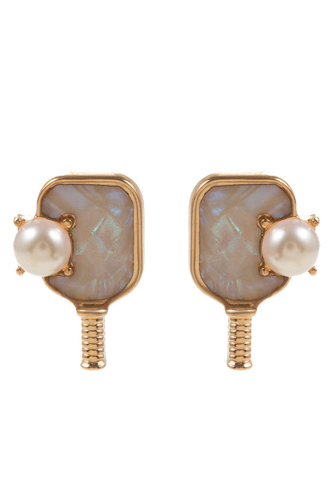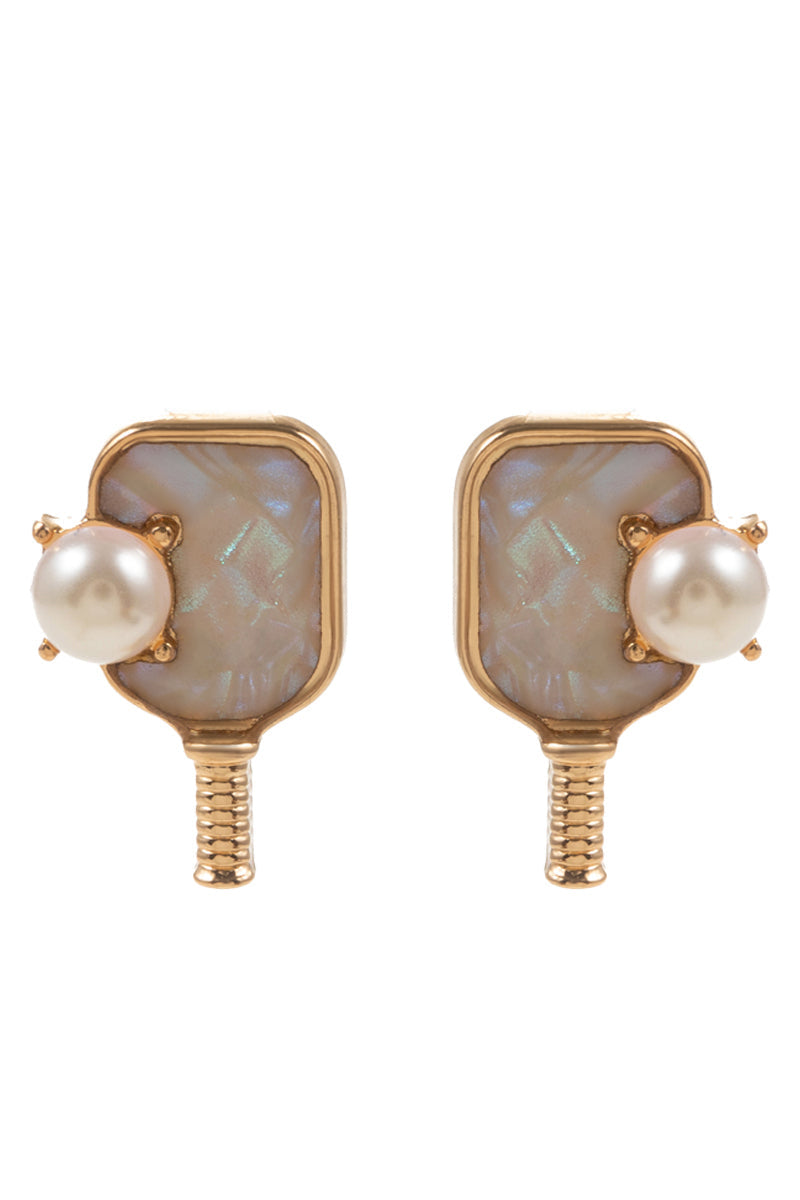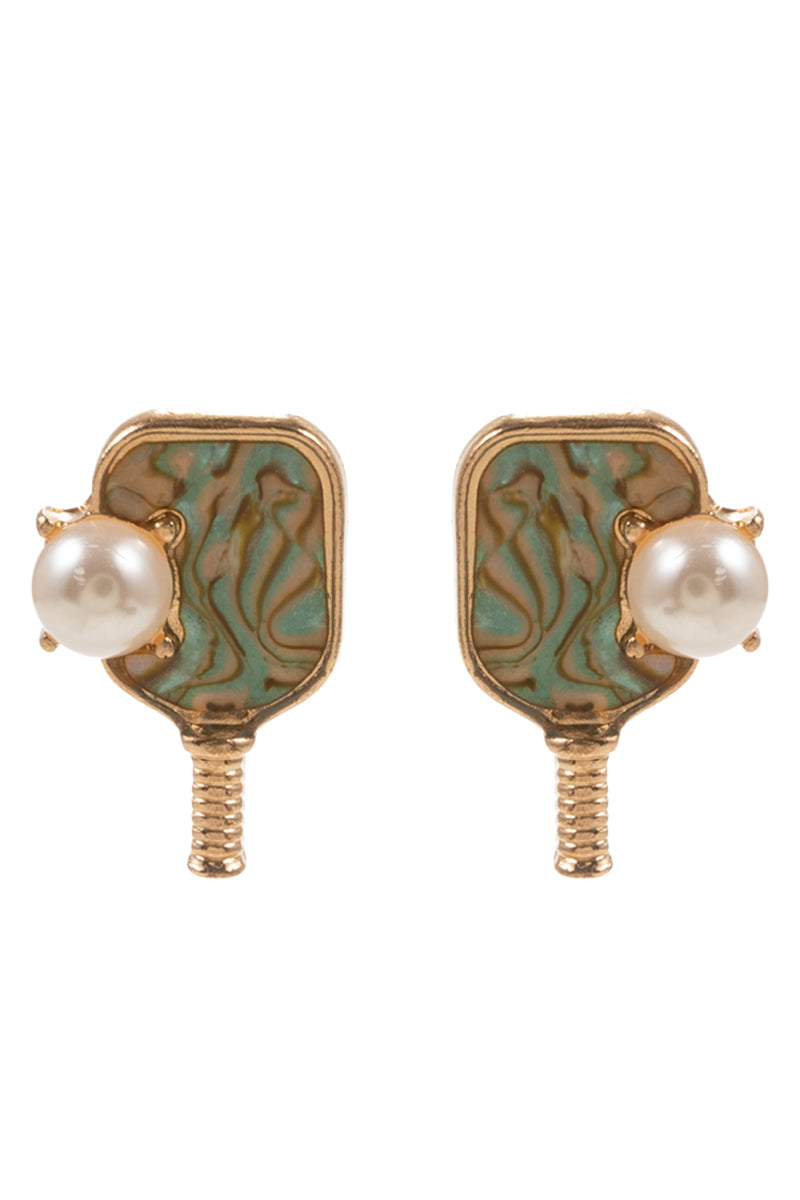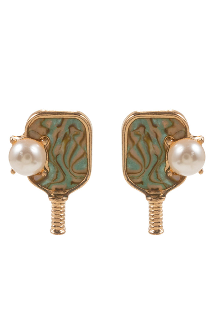 Sports Pickleball Shimmery W Pearl Post Earrings