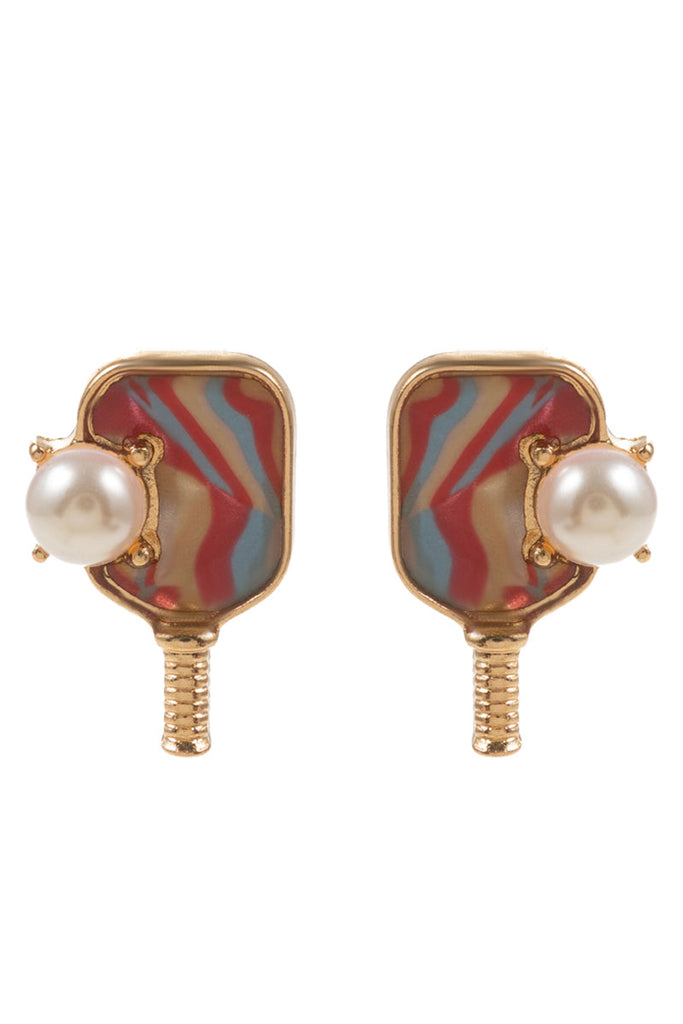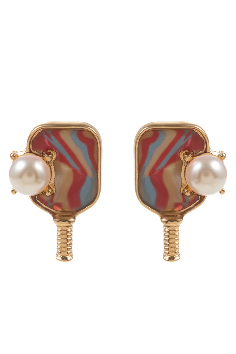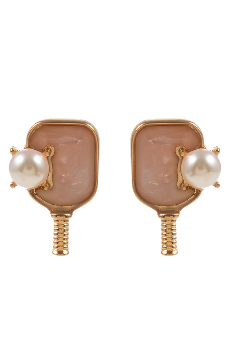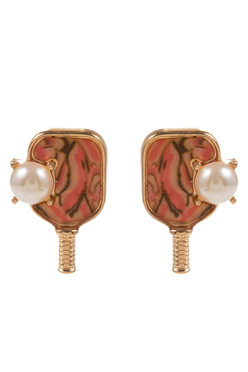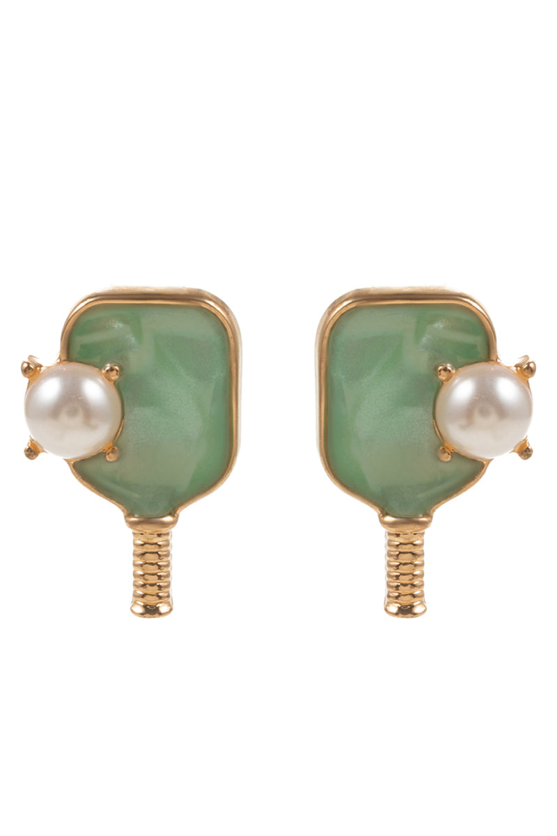 Sports Pickleball Shimmery W Pearl Post Earrings