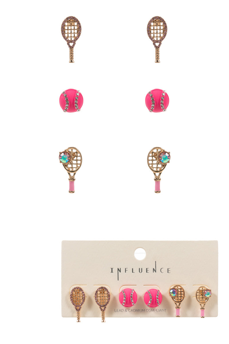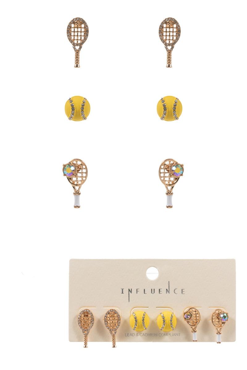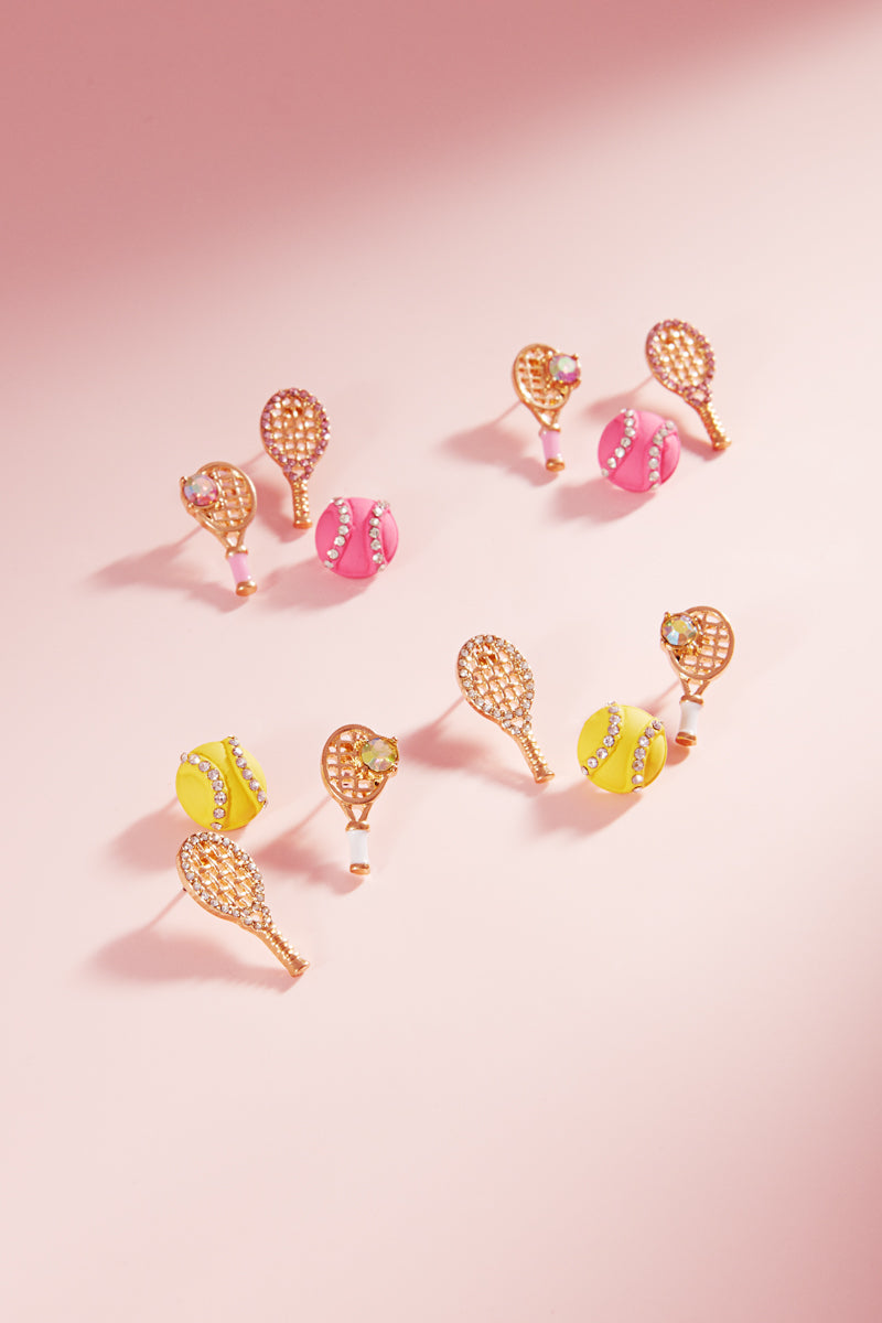 Sports Tennis Enameled Icons 3 Set Post Earrings