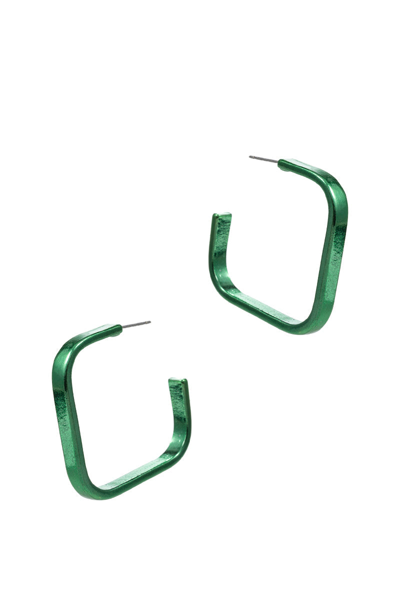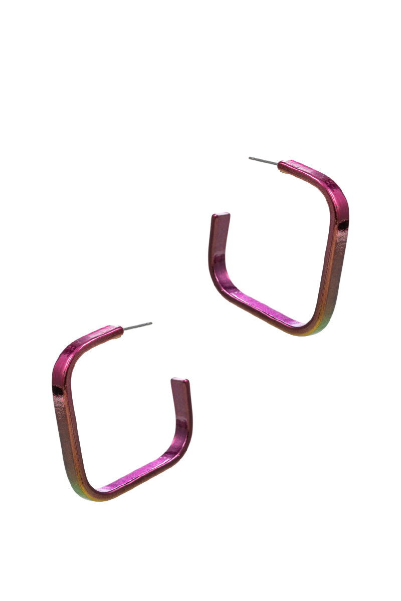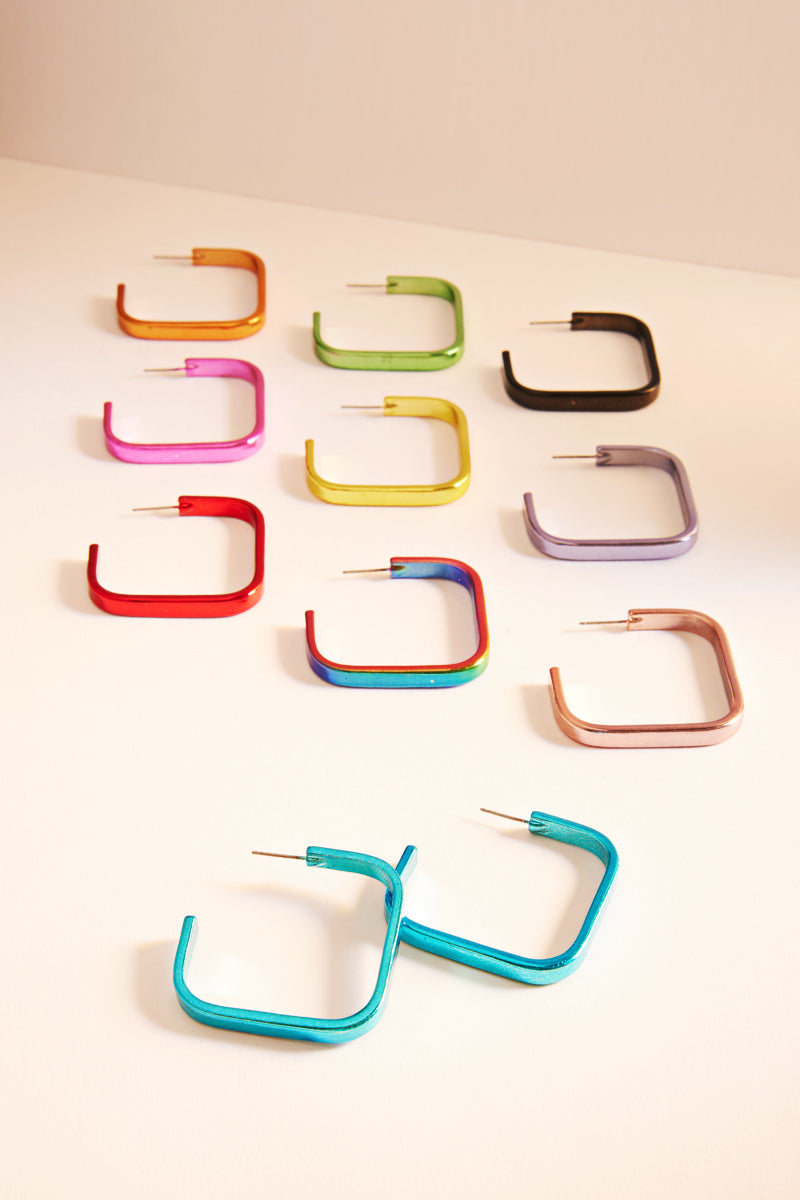 With a 1.6 inch square design, these electric coated hoop earrings are sure to make a statement. The unique coating provides a sleek and modern look, while the sturdy construction ensures long-lasting wear.