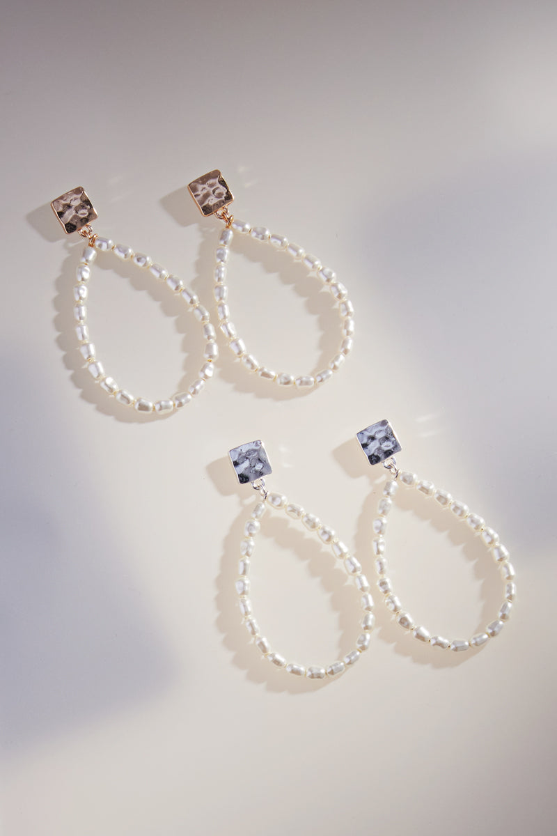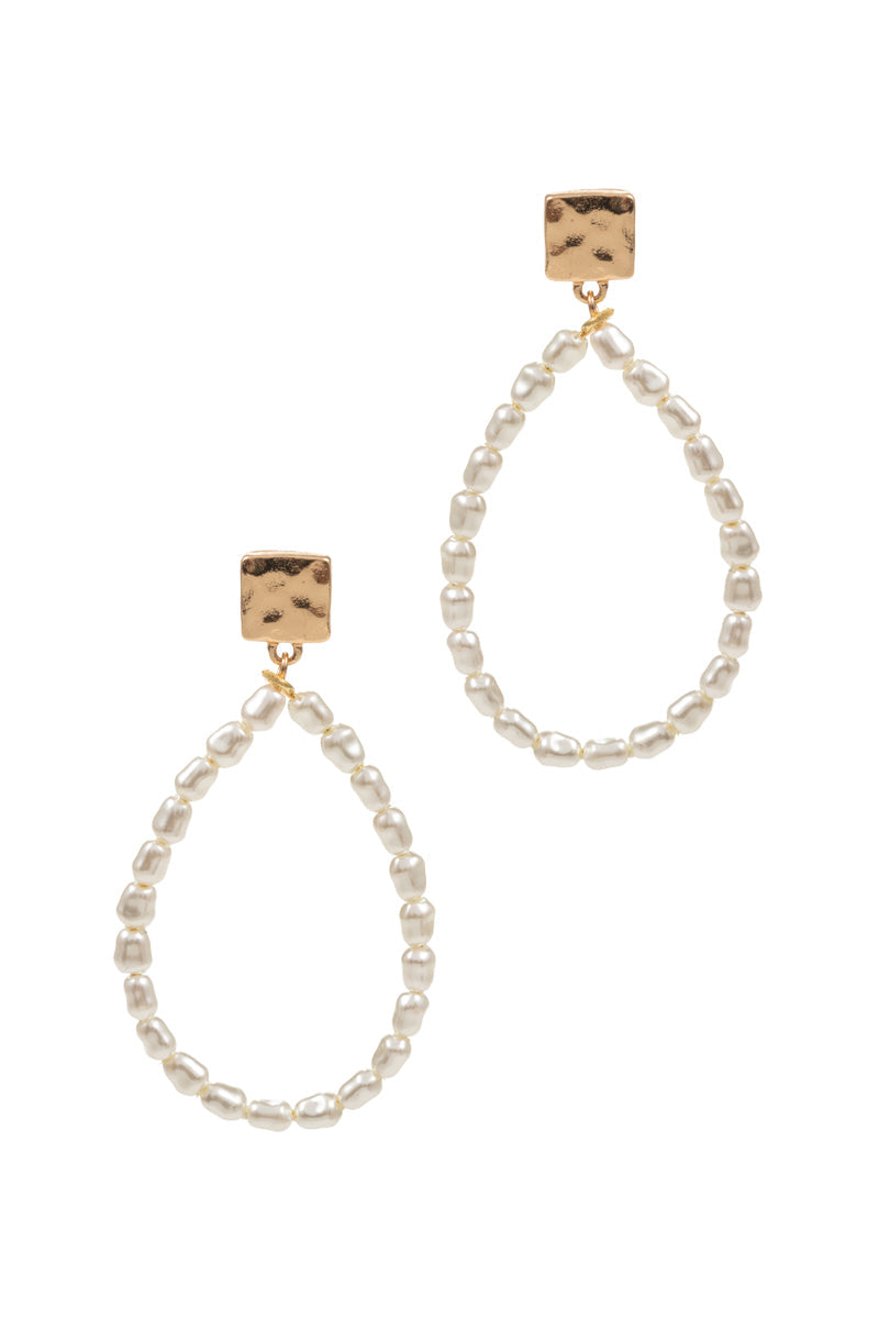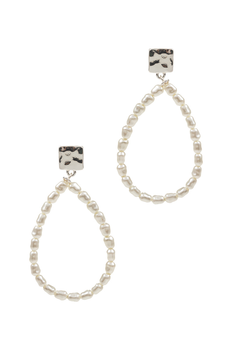 Square With Teardrop Shaped Pearl Post Earrings