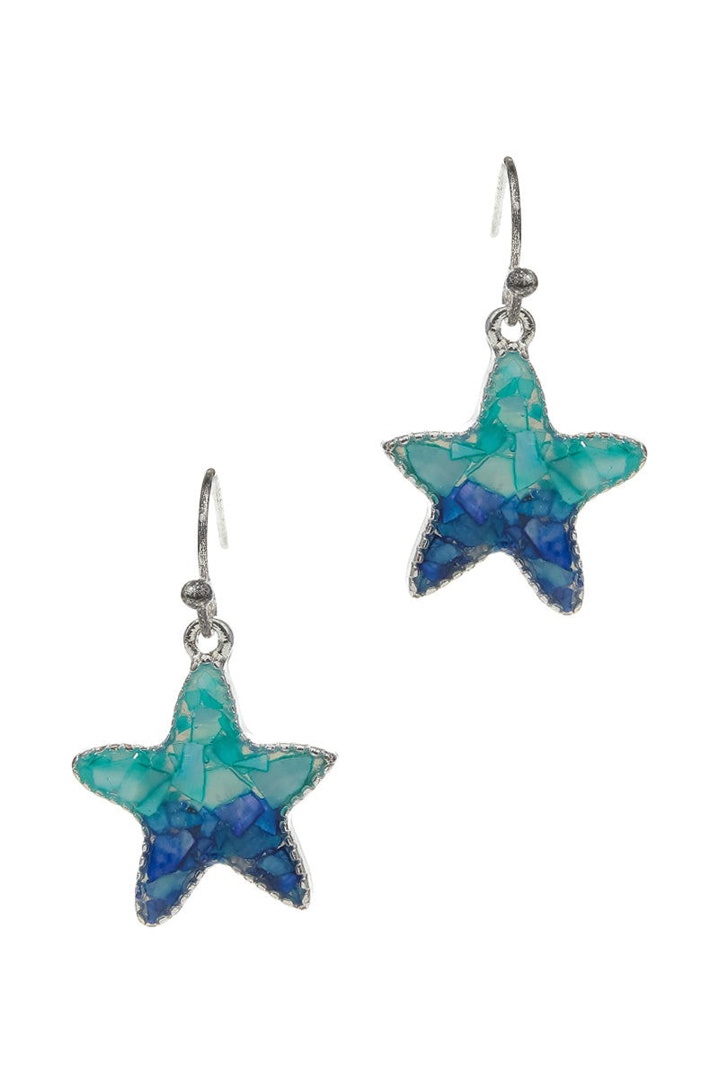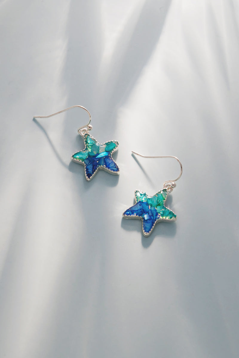 Starfish Chip Shell Summer Sea Life Hook Earrings