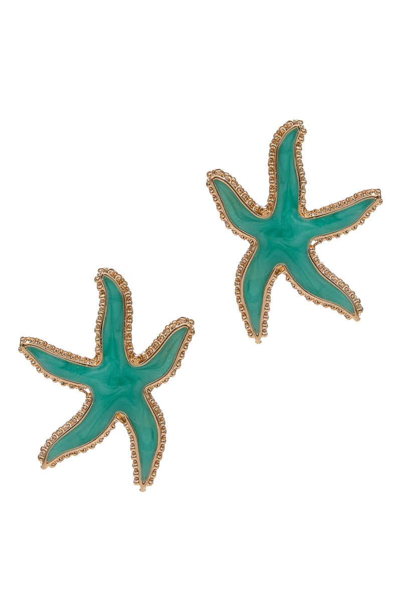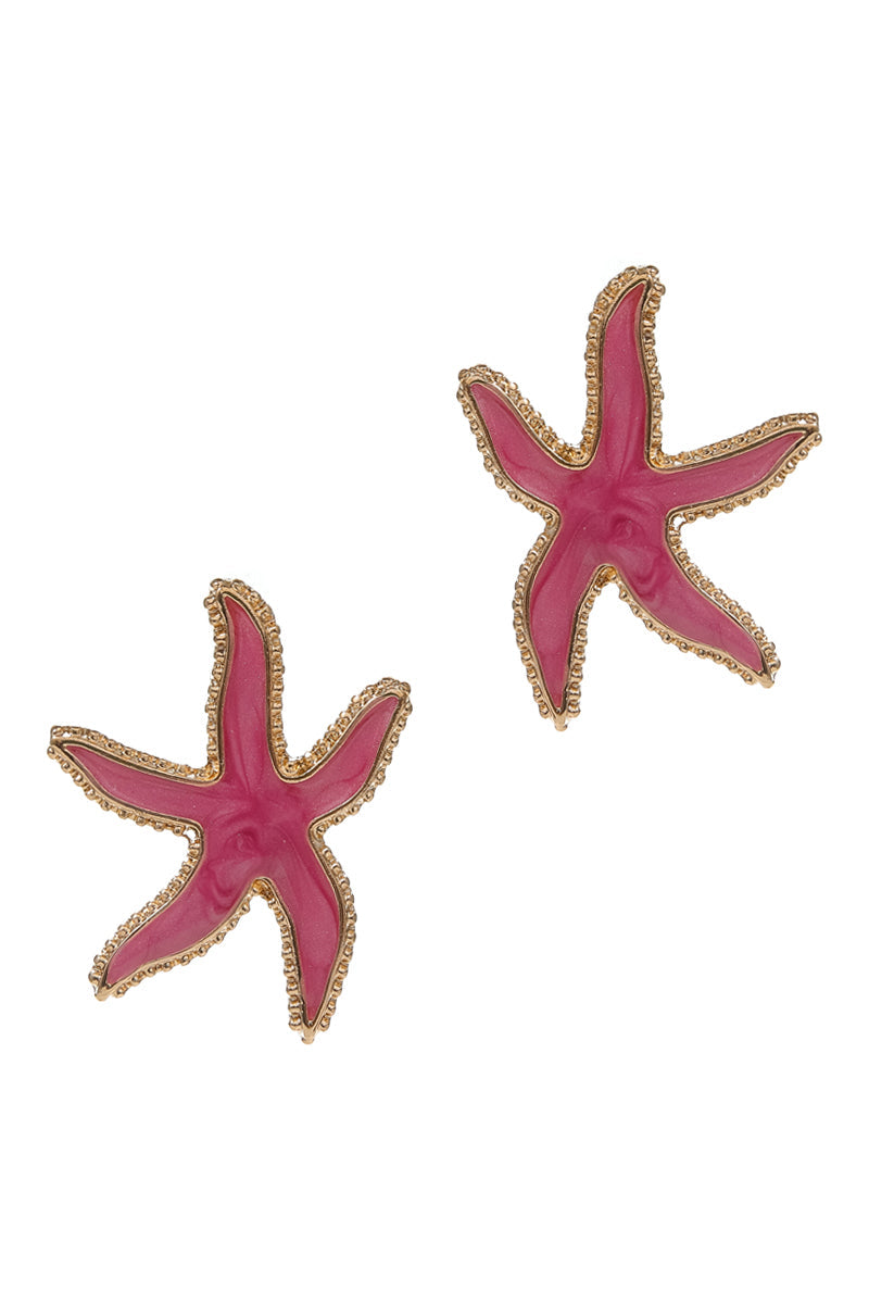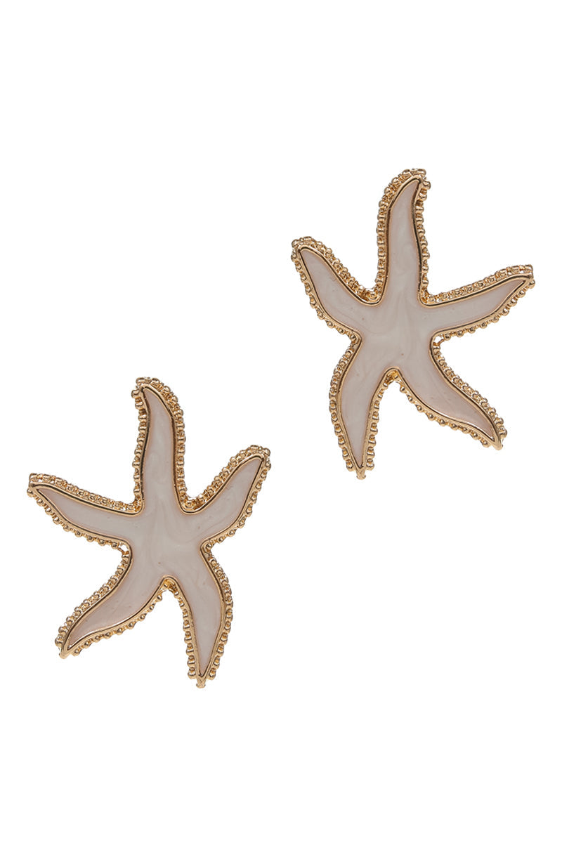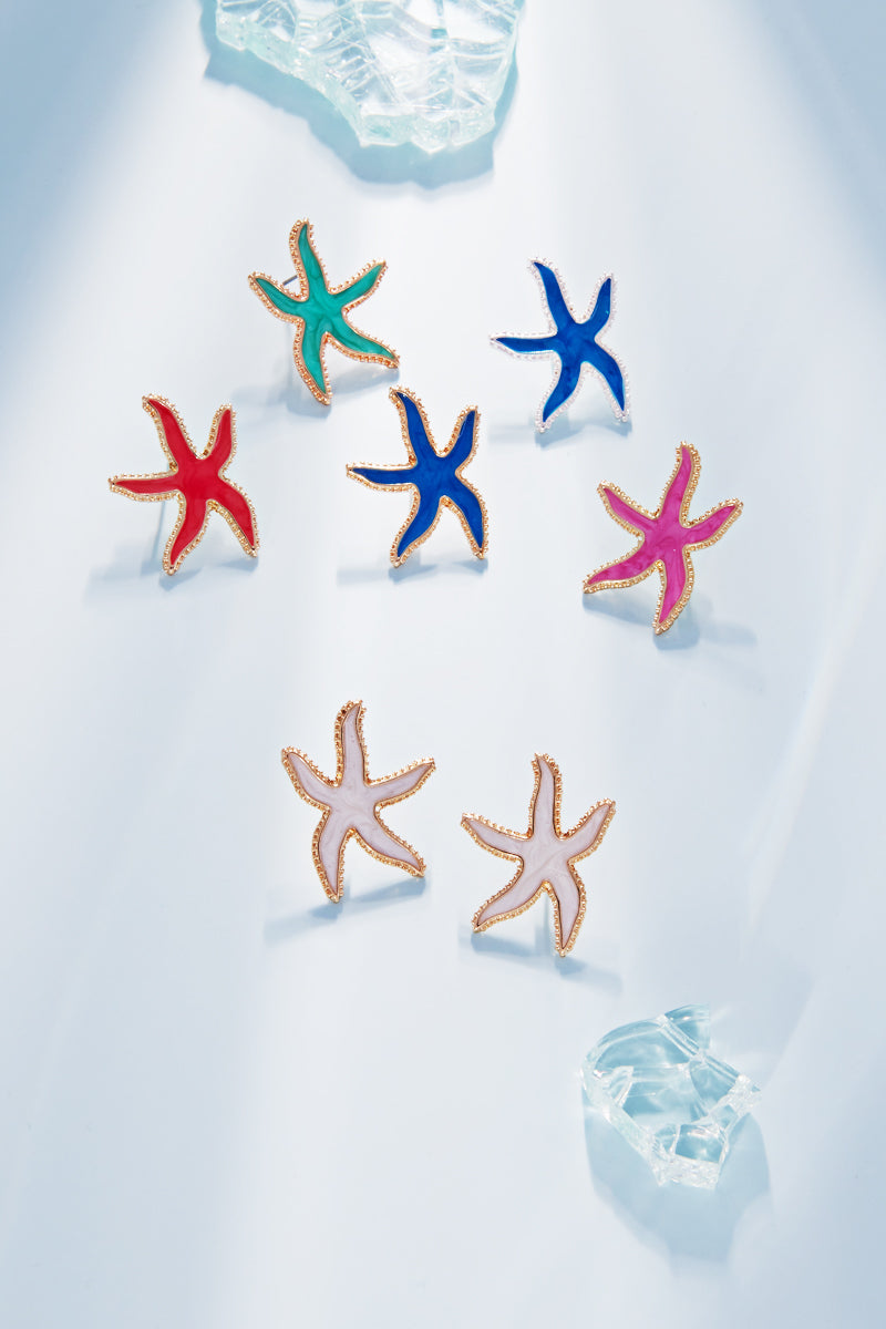 These 1.25 inch starfish shaped pearlized swirl enamel post earrings are crafted with expert precision and are perfect for adding a touch of elegance to any outfit.