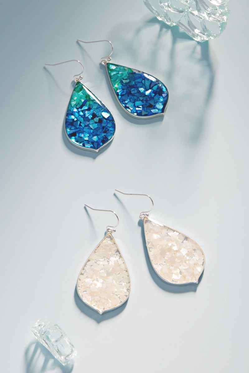 Teardrop Shaped Chip Shell Summer Hook Earrings