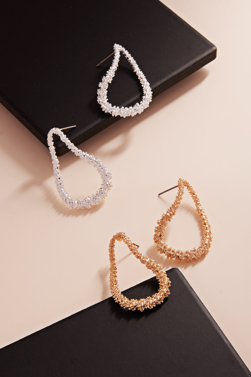 Teardrop Shaped Textured Basic Metal Post Earrings