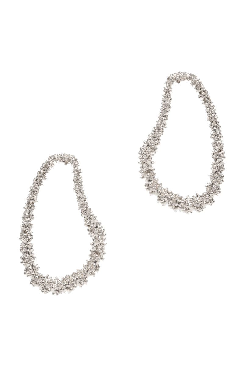 These elegant earrings feature a unique teardrop shape and textured metal design. With a 1.5 inch size, they are the perfect statement piece for any outfit. Enhance your look with a touch of sophistication and style.