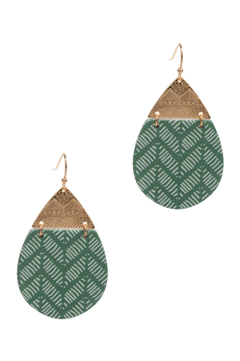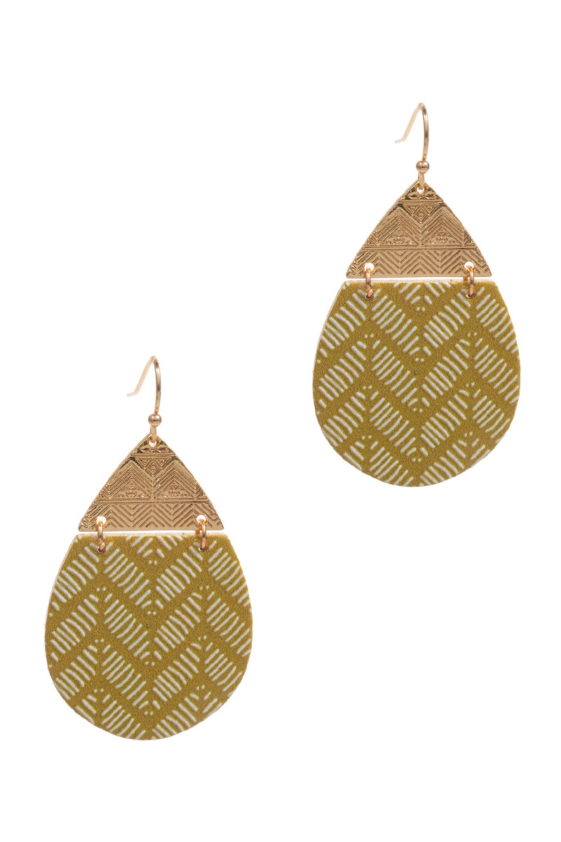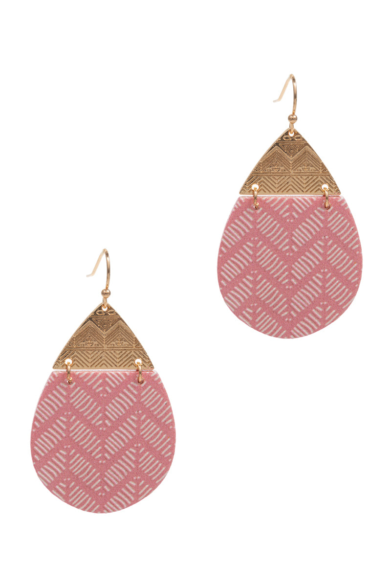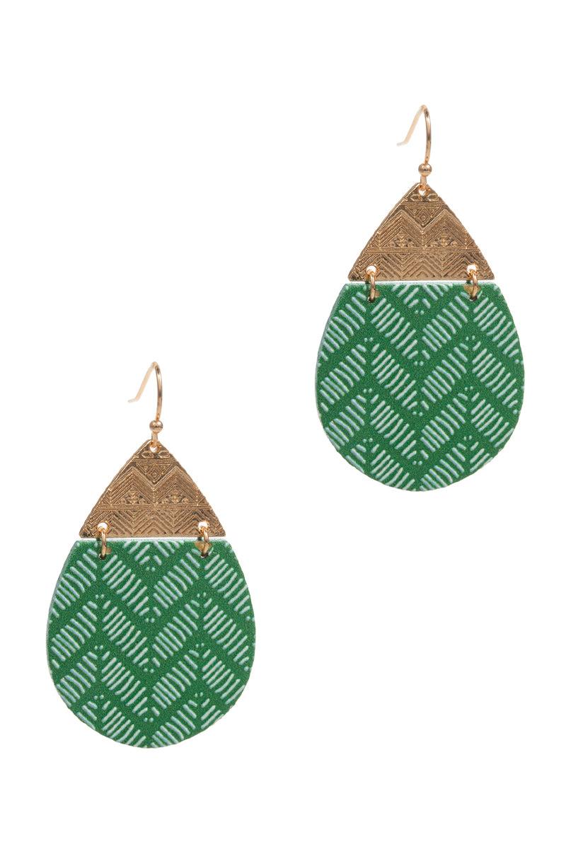 Teardrop Shaped Wood Chevron Pattern Hook Earrings