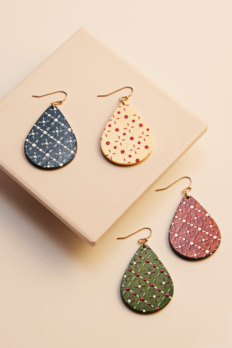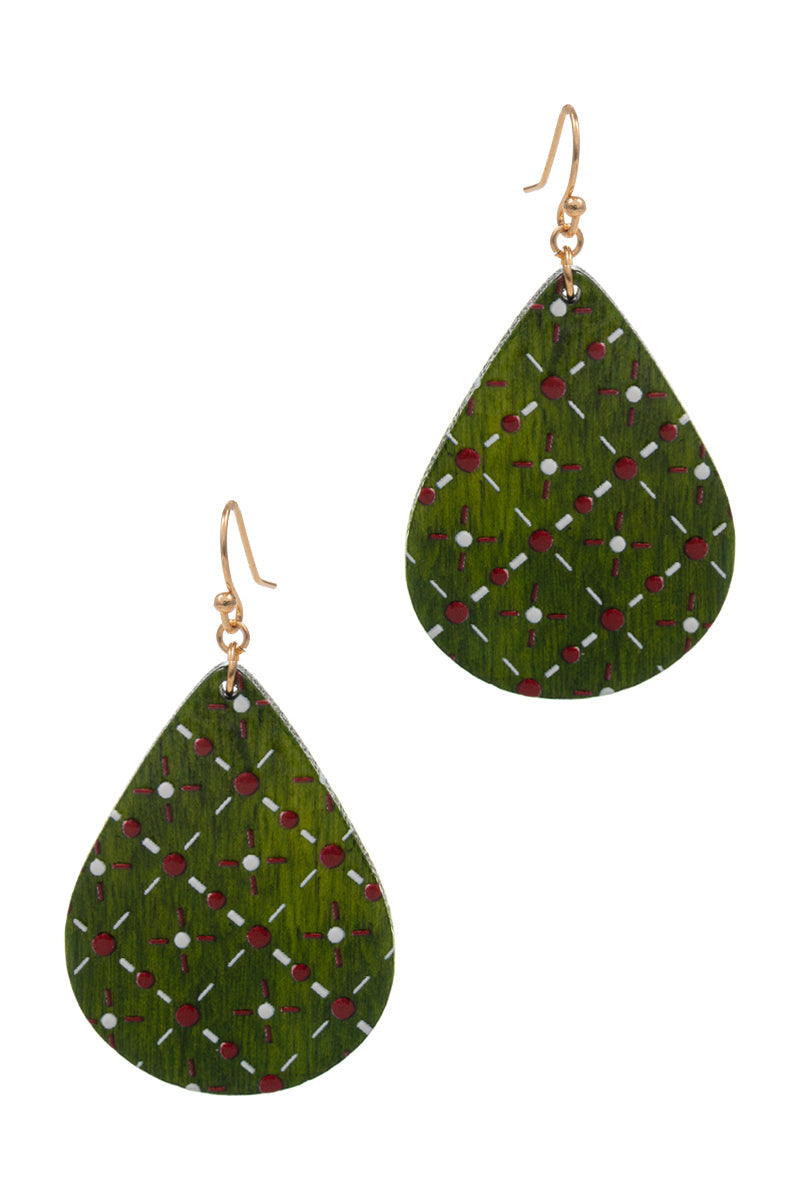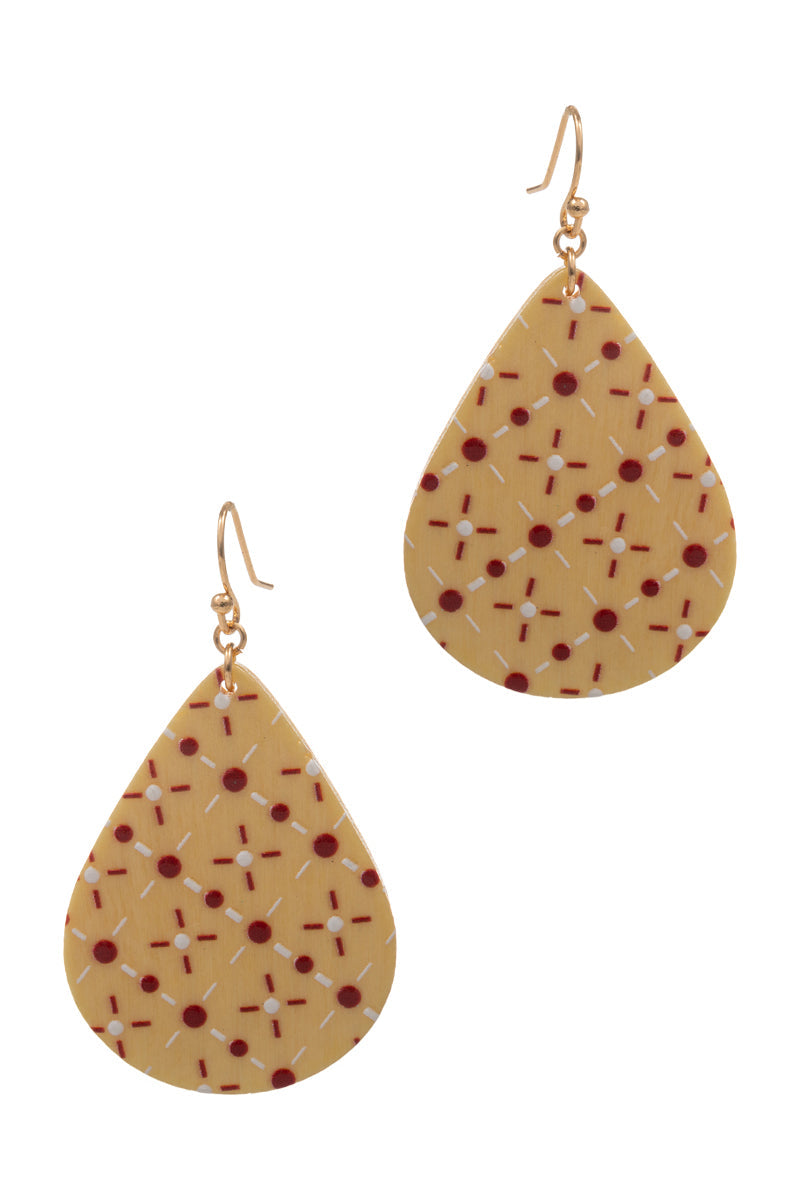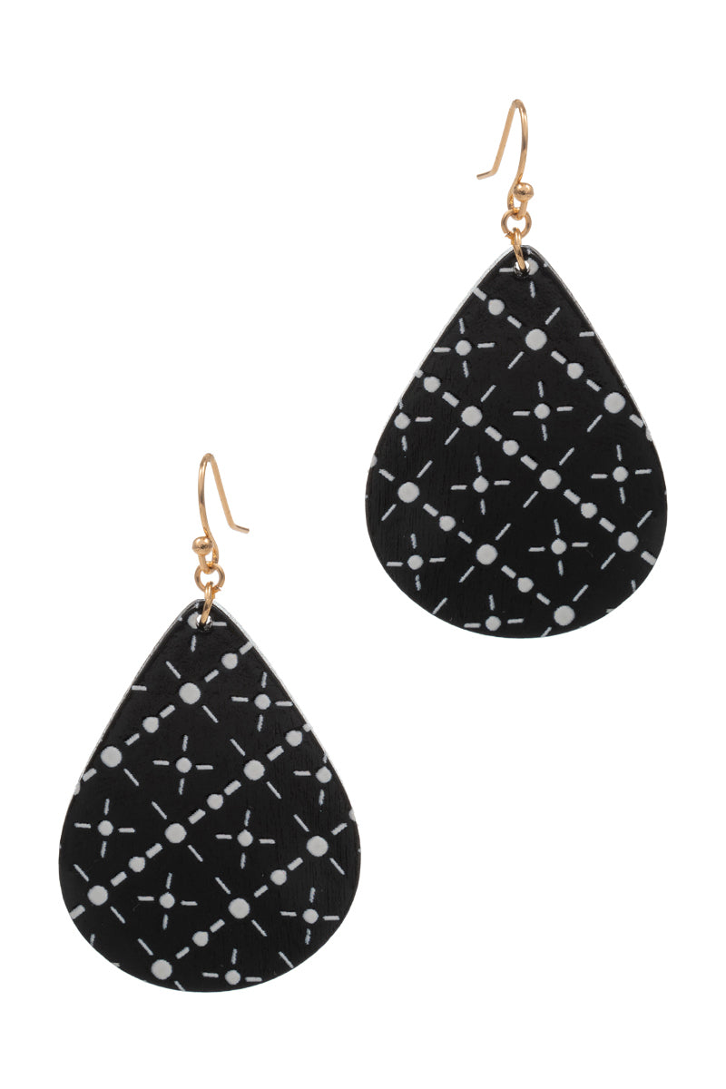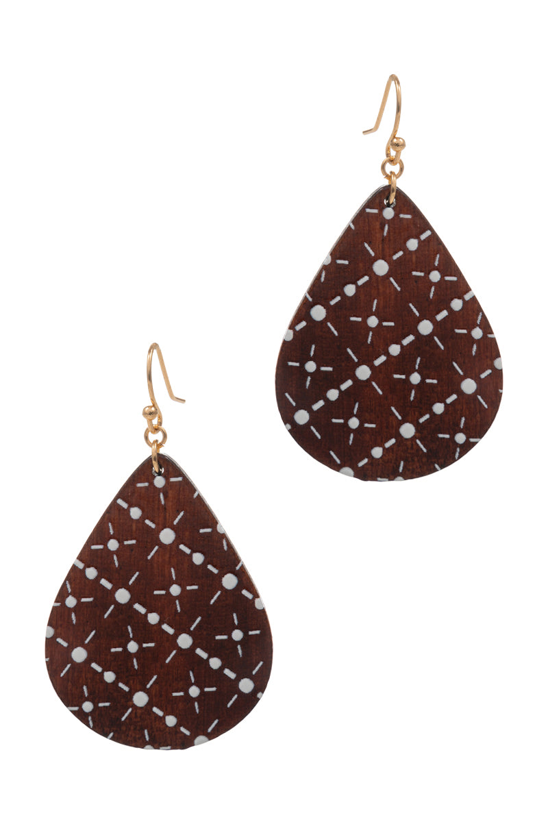 Teardrop Wood Printed Hook Earrings
