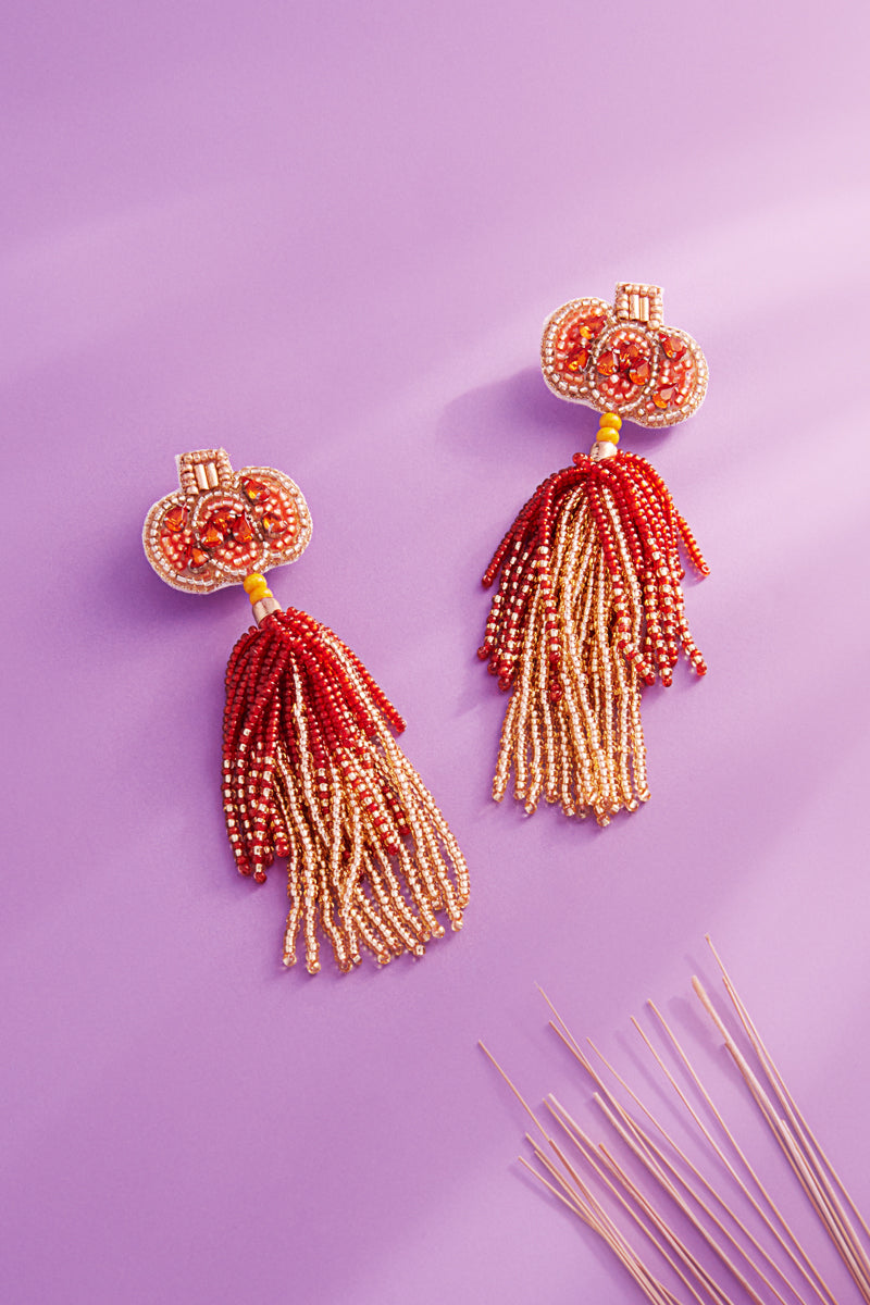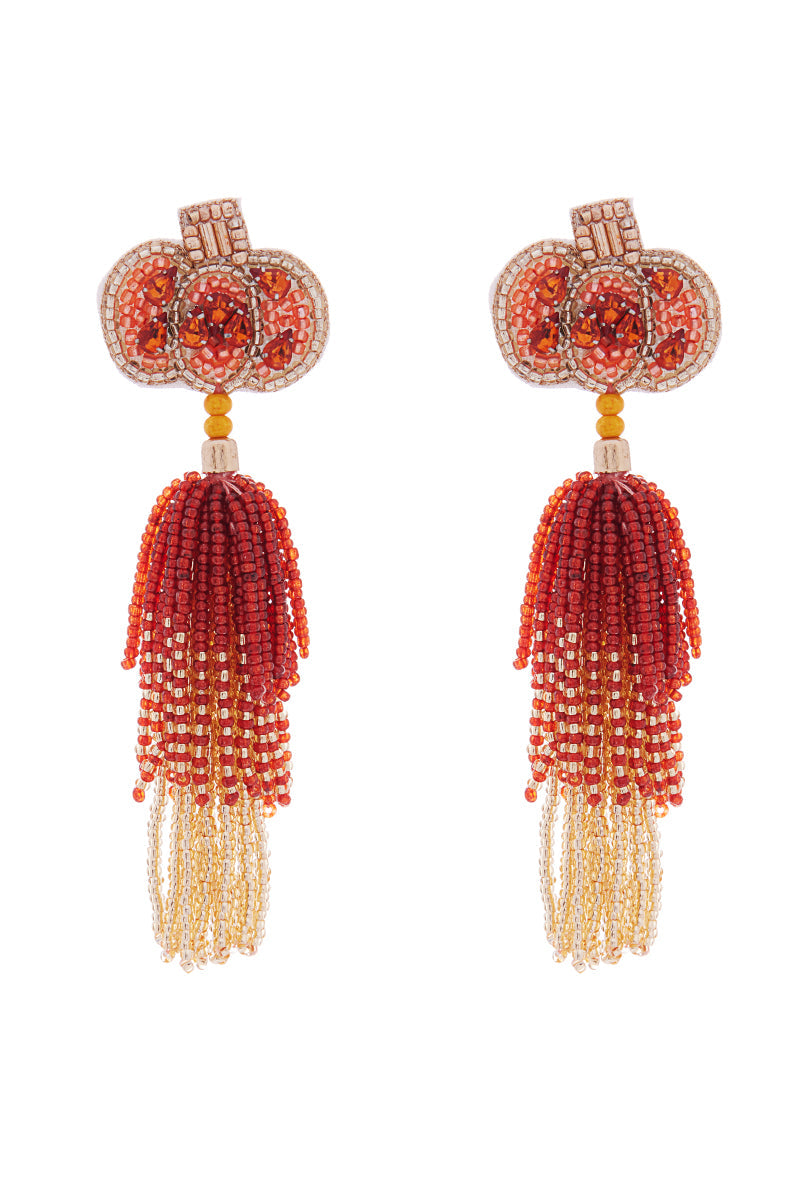 Thanksgiving Pumpkin Beads Tassel Post Earrings