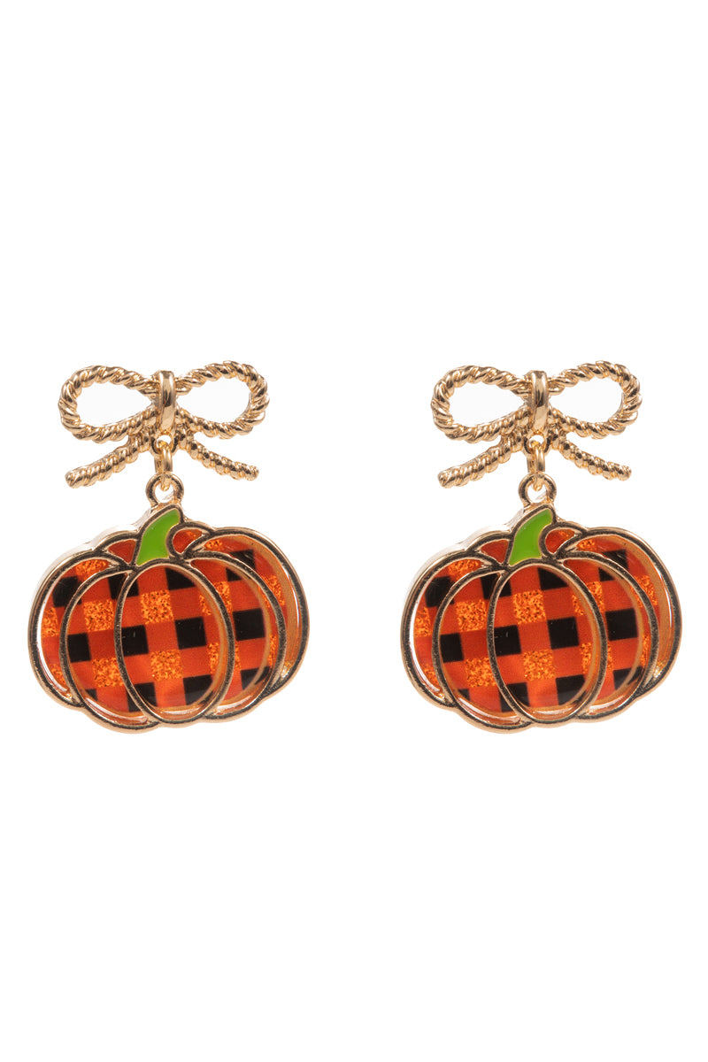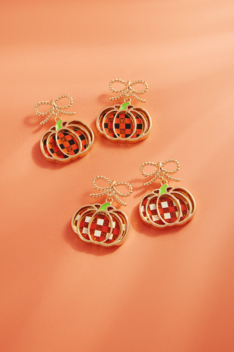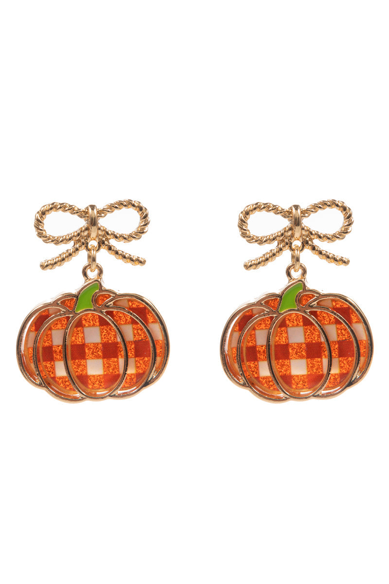 Thanksgiving Pumpkin Checker Board Post Earrings