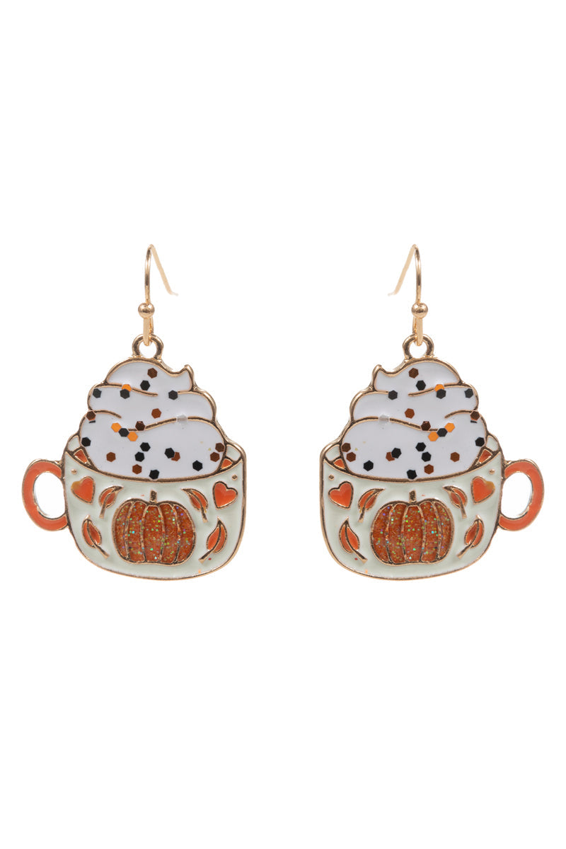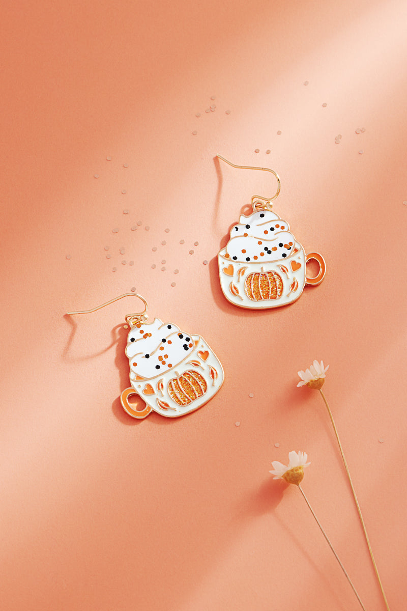 Thanksgiving Pumpkin Latte Enamel Hook Earrings