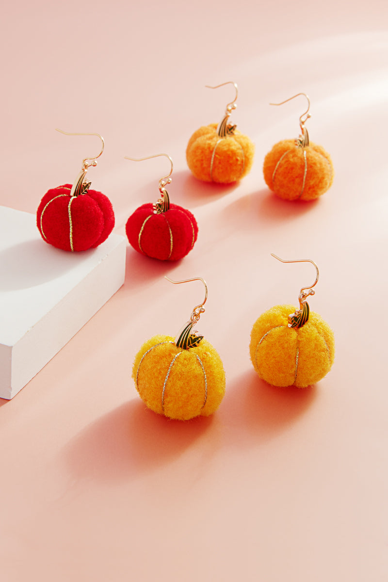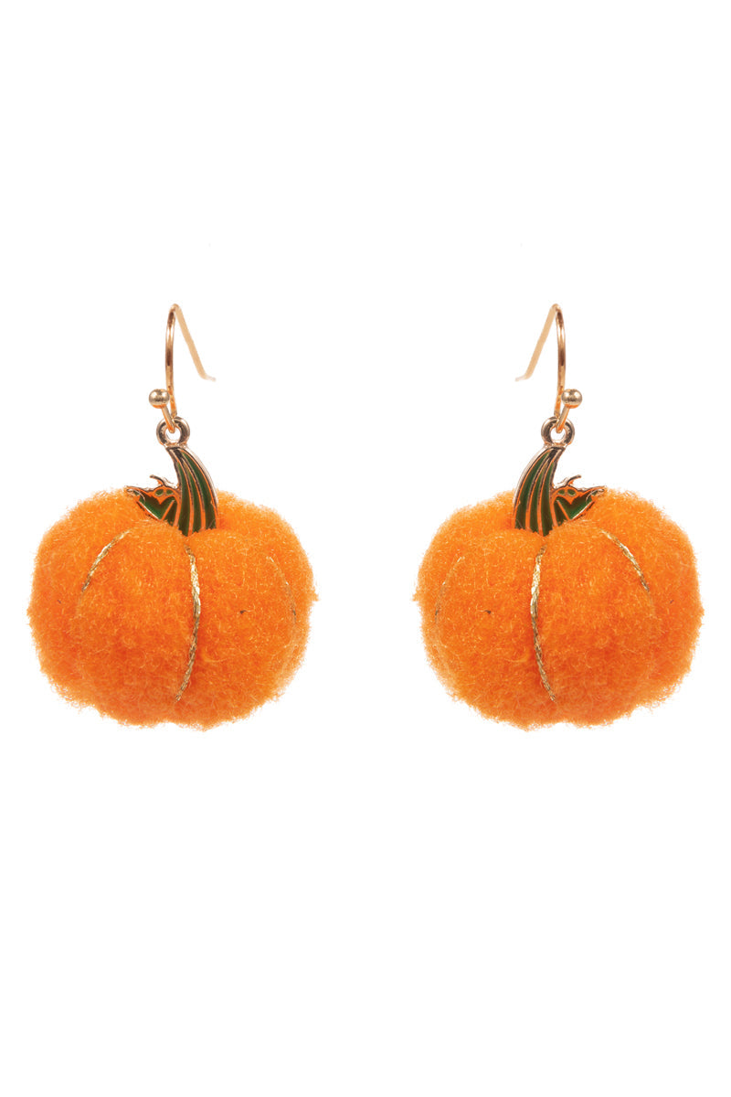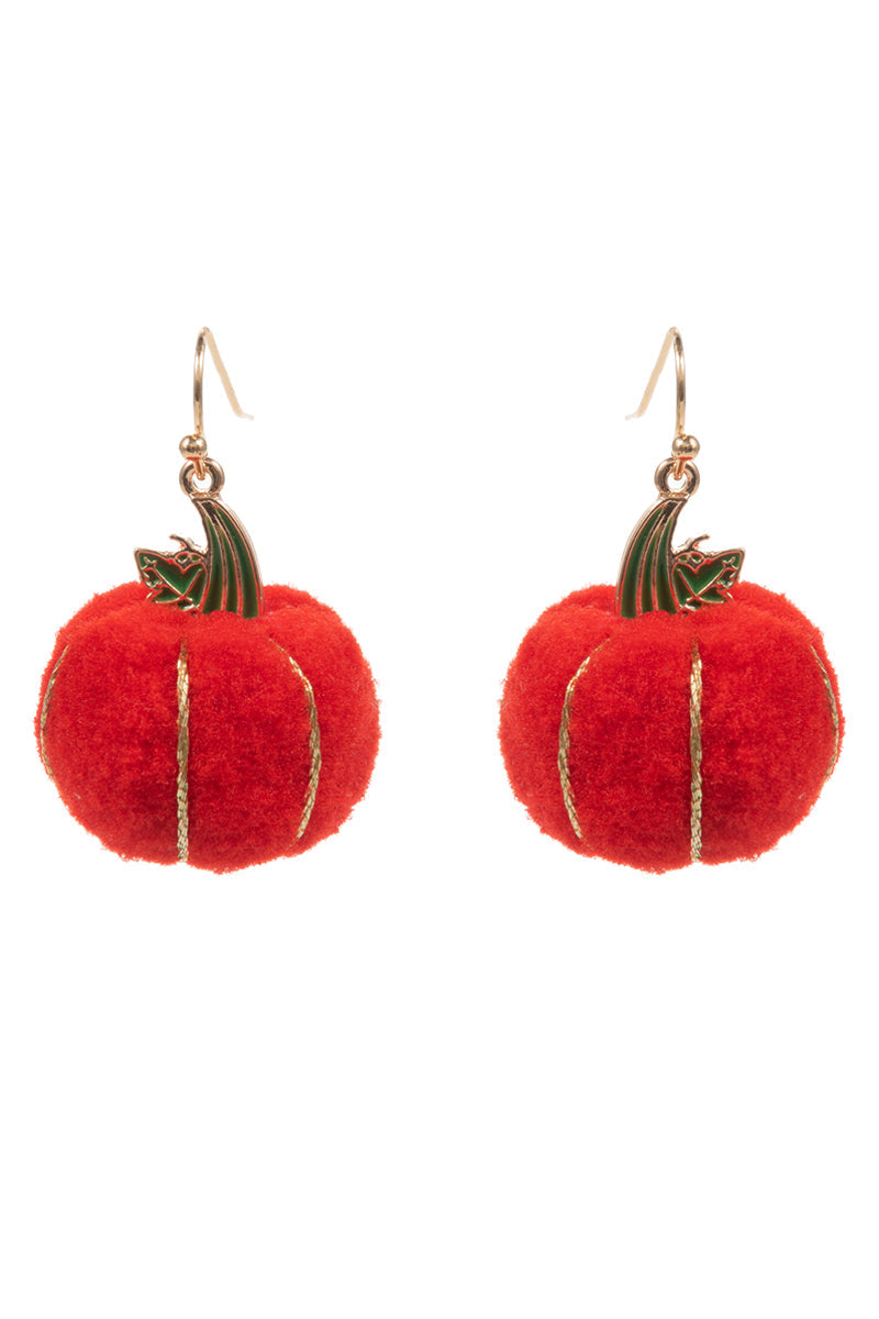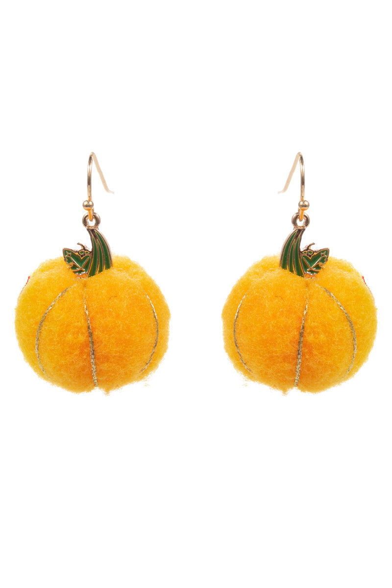 Thanksgiving Pumpkin Pompom Brass Hook Earrings