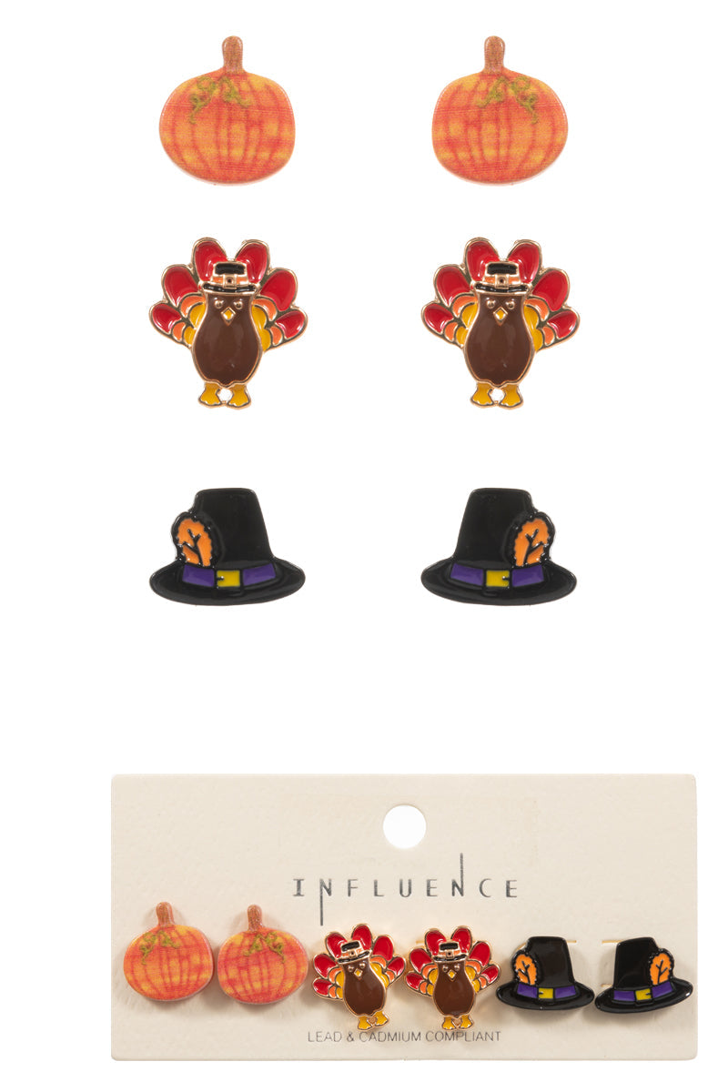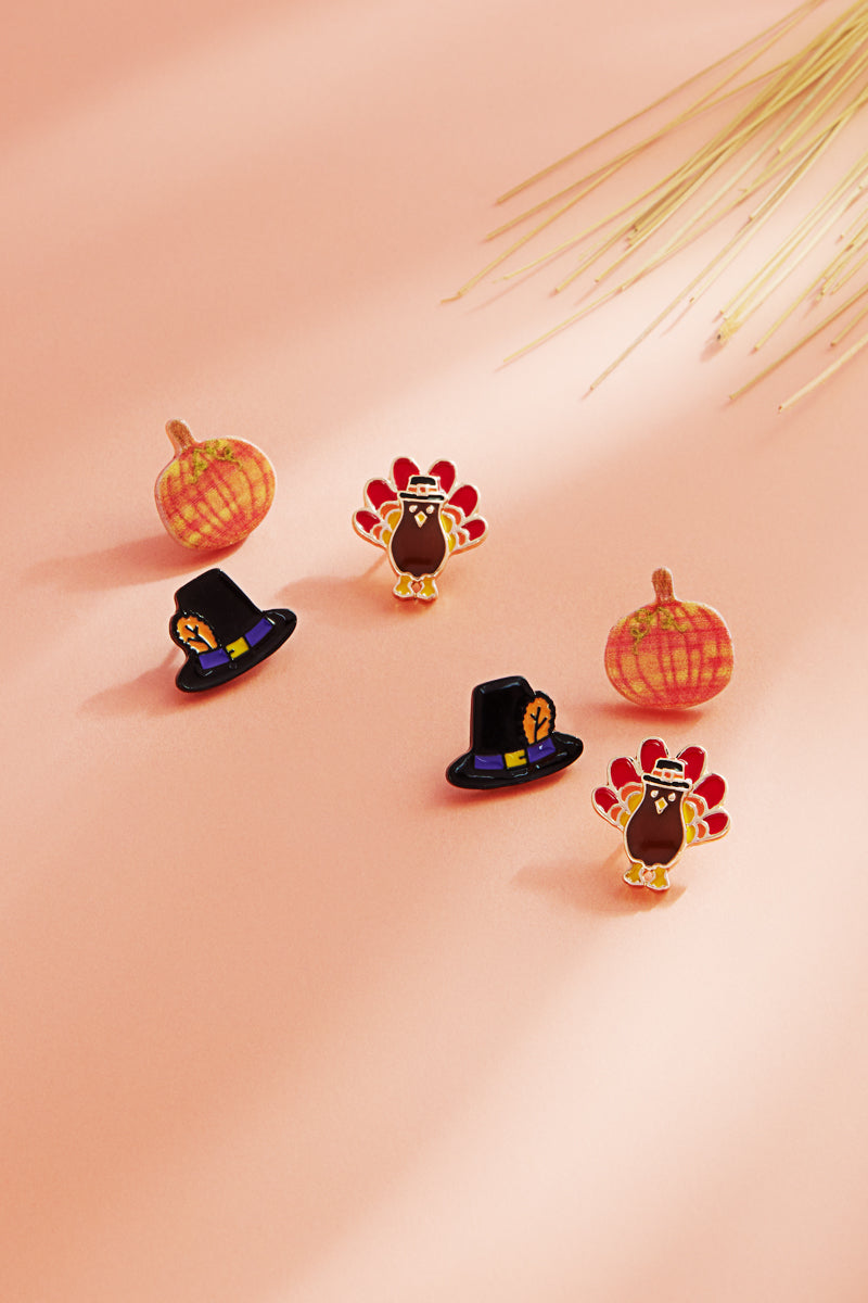 Thanksgiving Pumpkin Turkey Hat 3Set Post Earrings