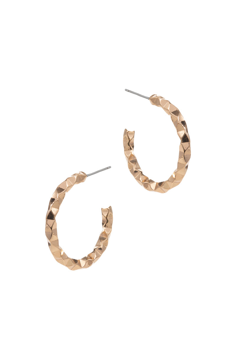 Tri Shaped Pattern Brass Metal Hoop Earrings