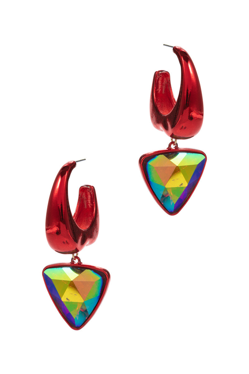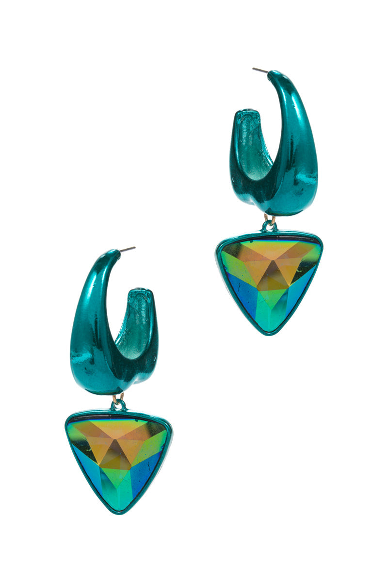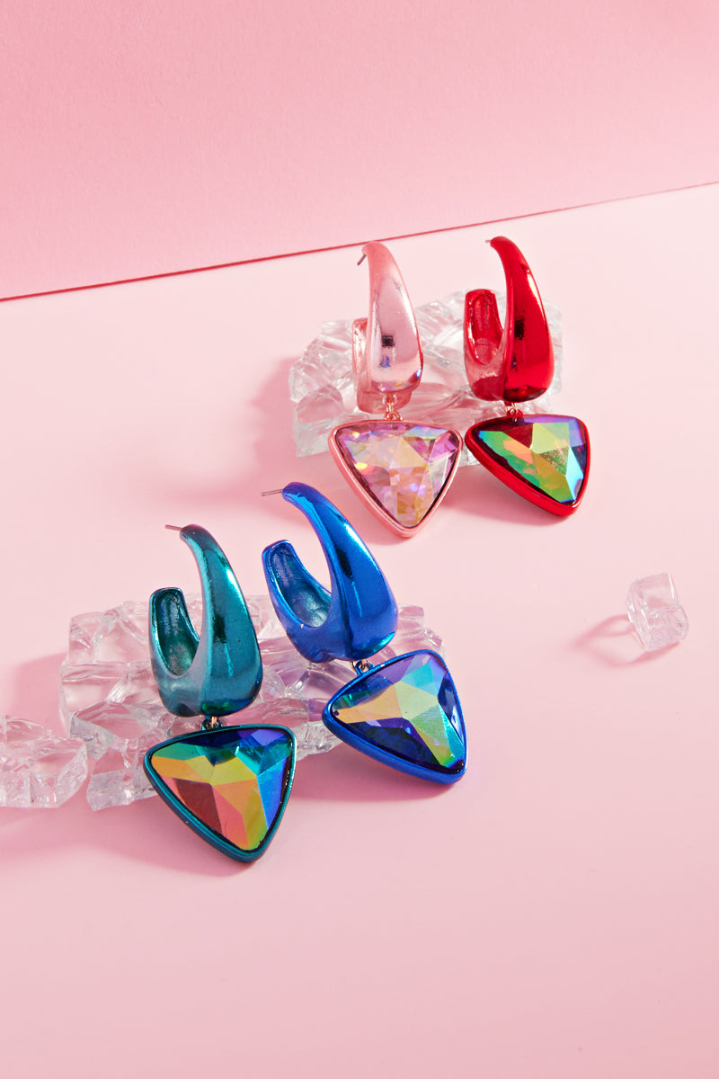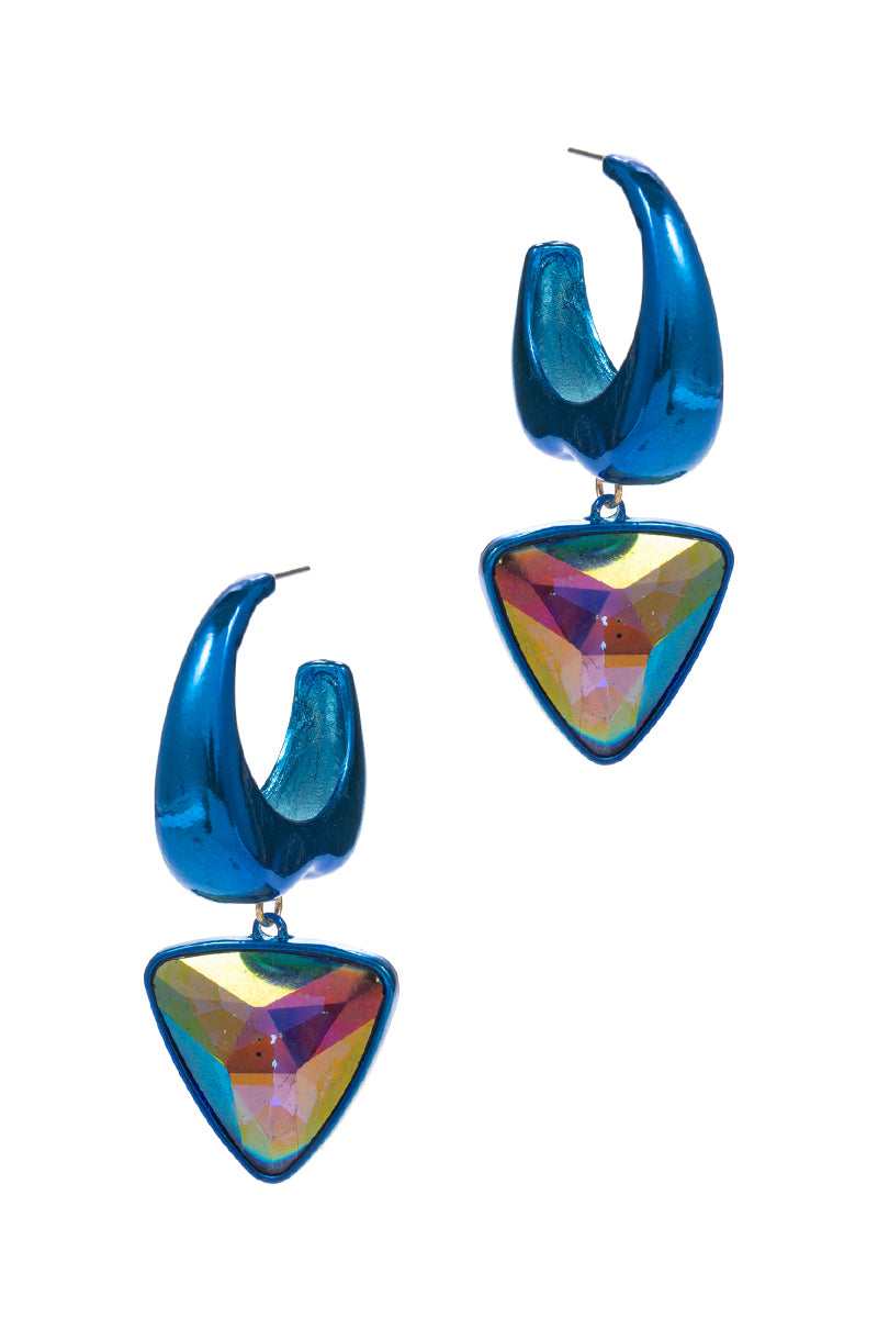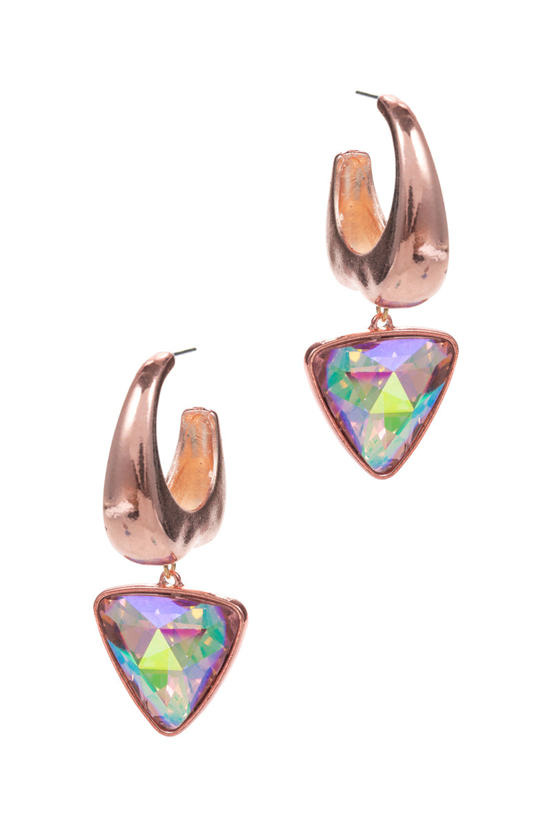Triangle Multicolored Rhine Stone Hoop Earrings