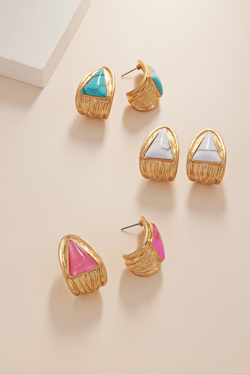 Triangle Vintage Resin Faux Stone Hoop Earrings