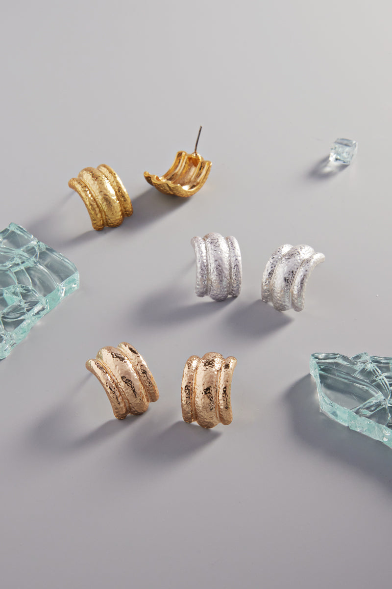 Triple Volume Vintage Metal Pin Hoop Earrings