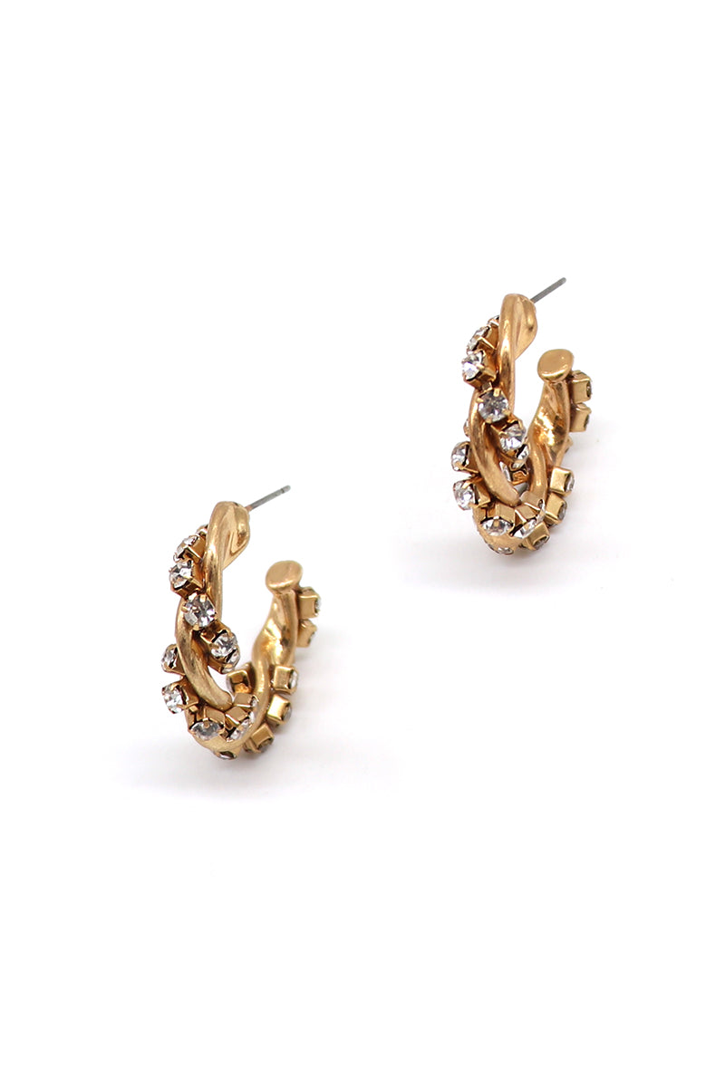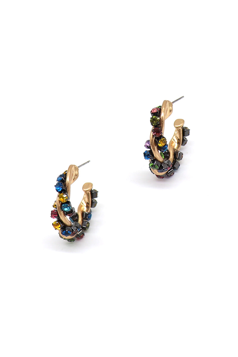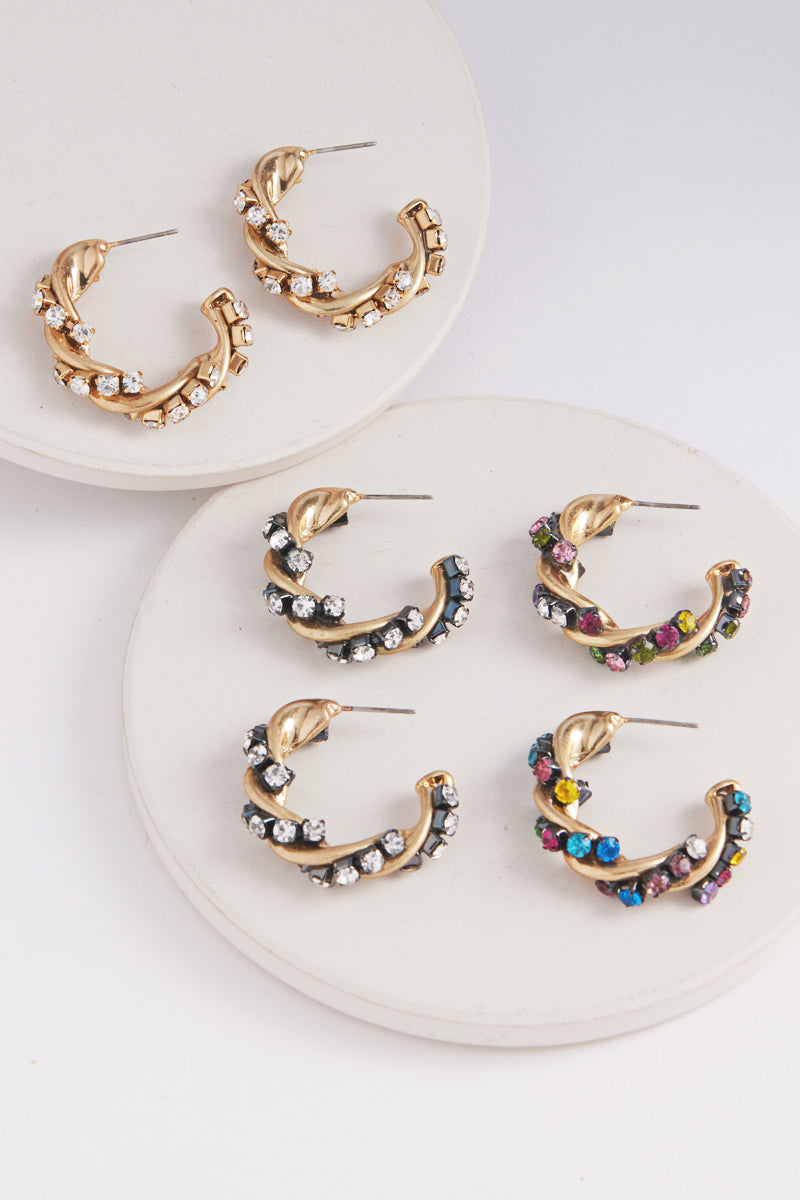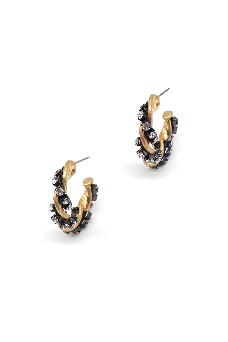 Twist Irregular Rhine Stone Titanium Hoop Earrings
