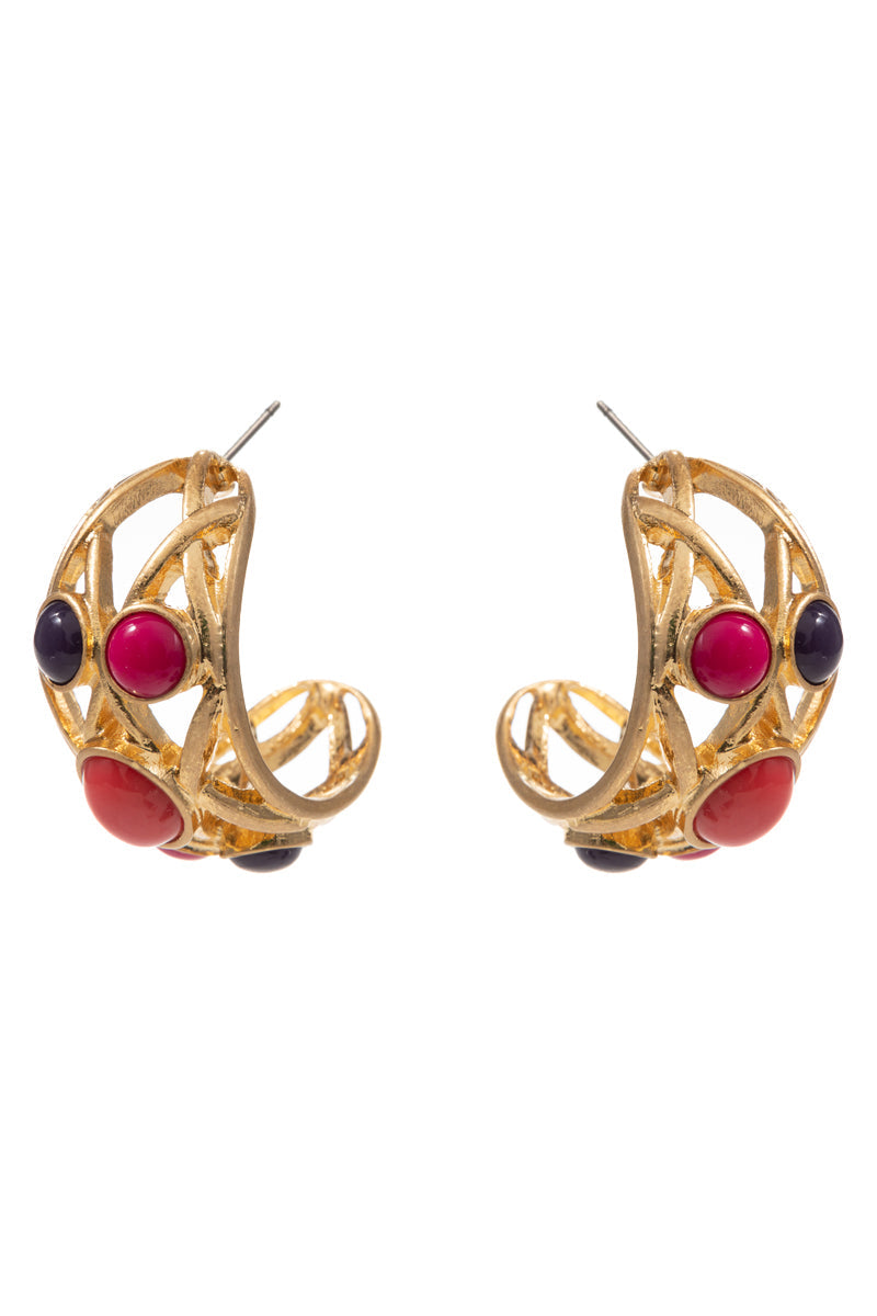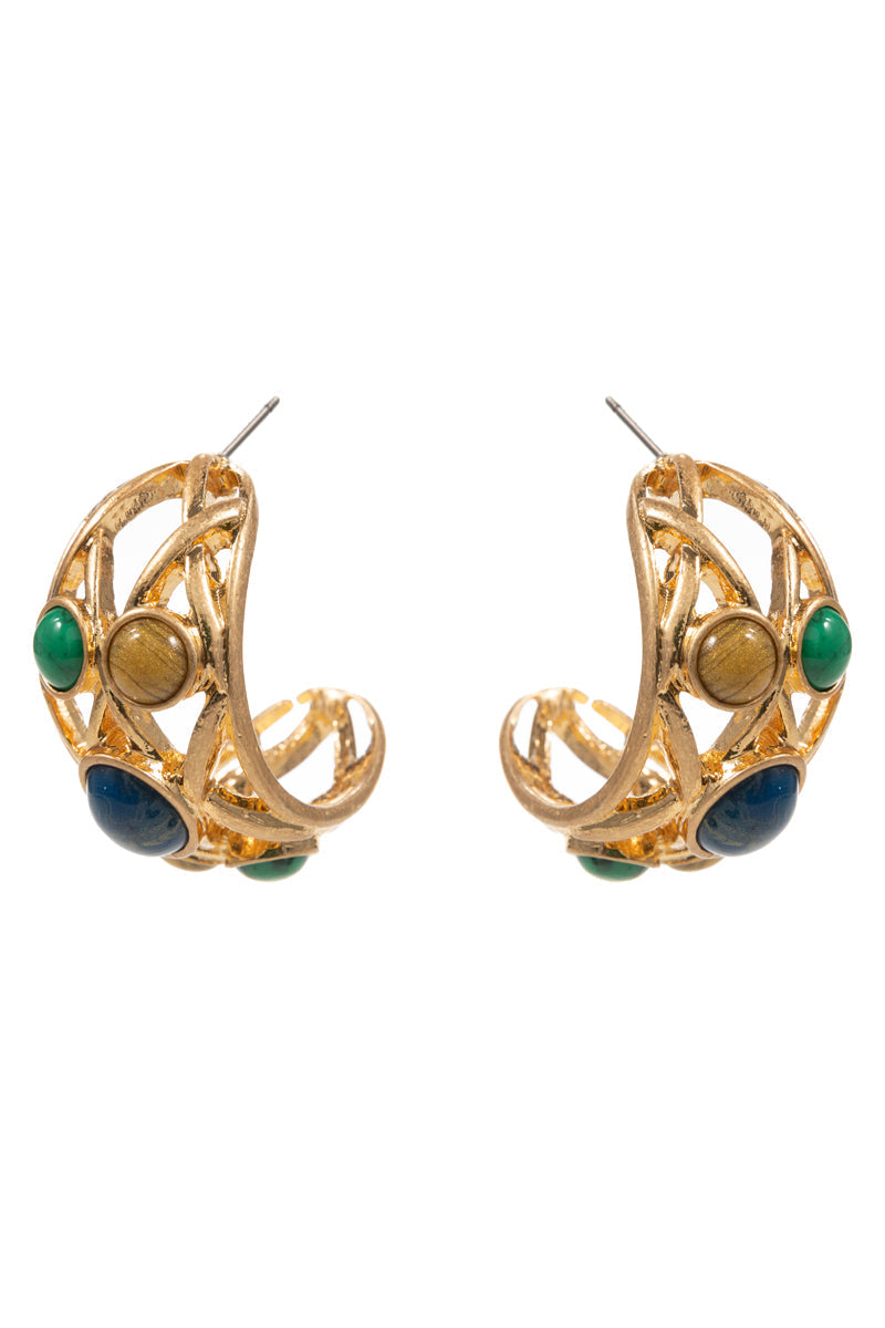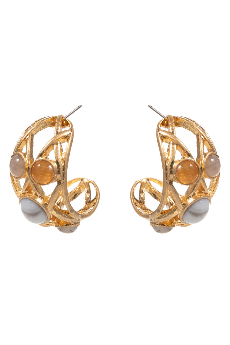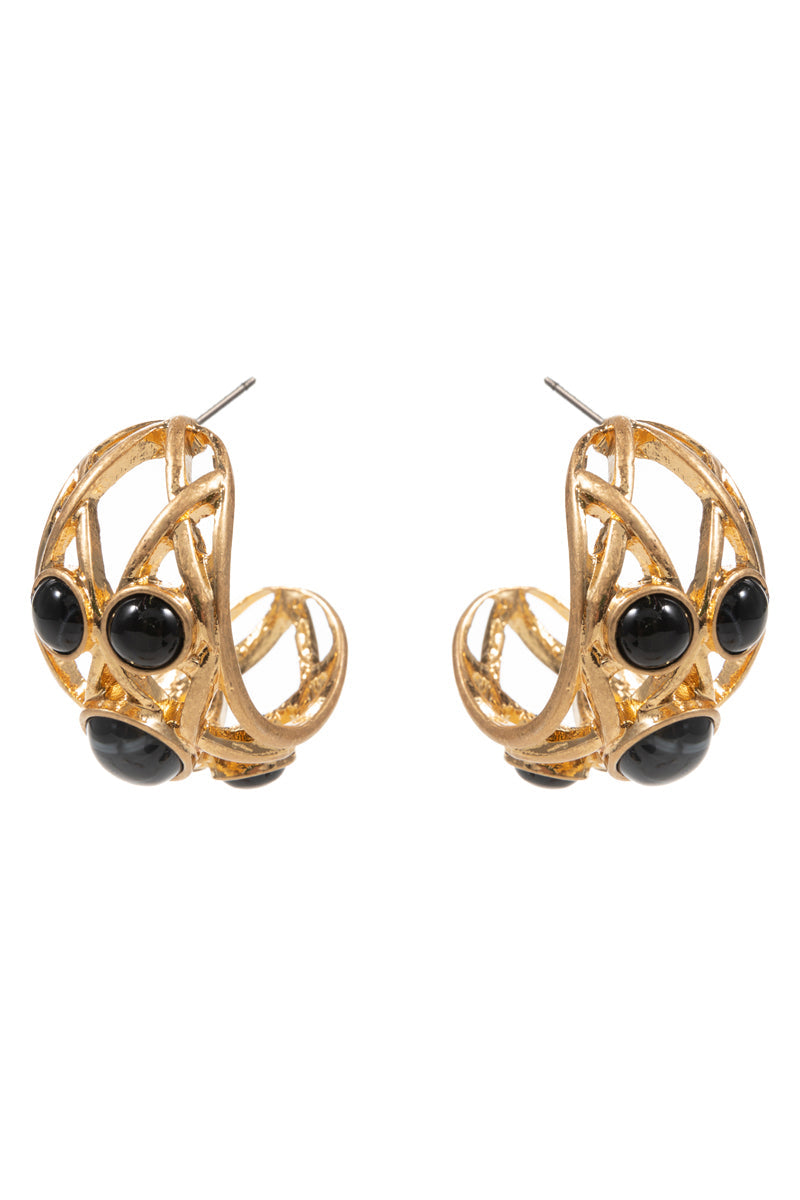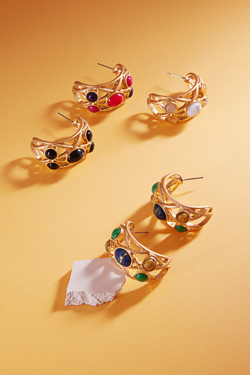 Twisted Metal W Resin Faux Stone Pin Hoop Earrings