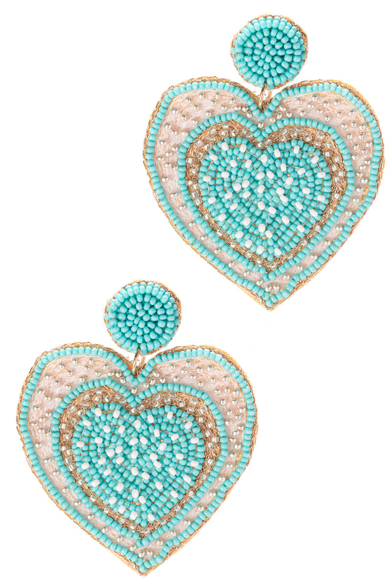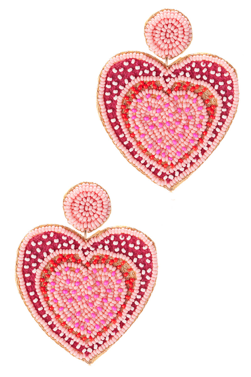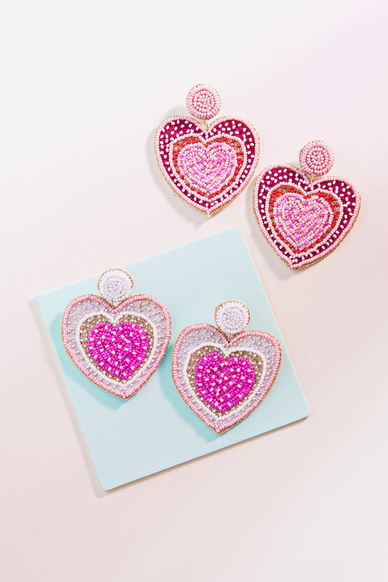 Enhance your look with our 2 inch heart beaded earrings. Made from high-quality materials, these earrings are designed to add a touch of elegance to any outfit. The red post provides a pop of color, making these earrings perfect for both casual and formal occasions.