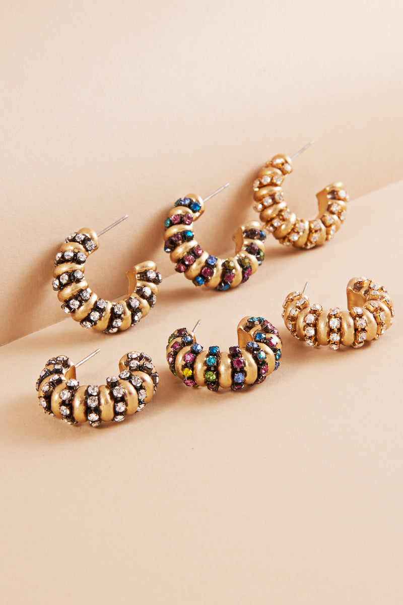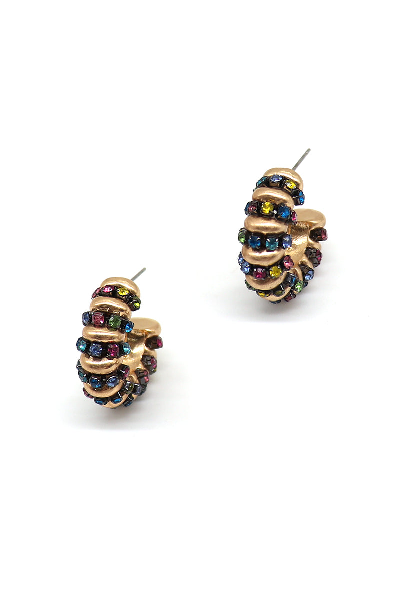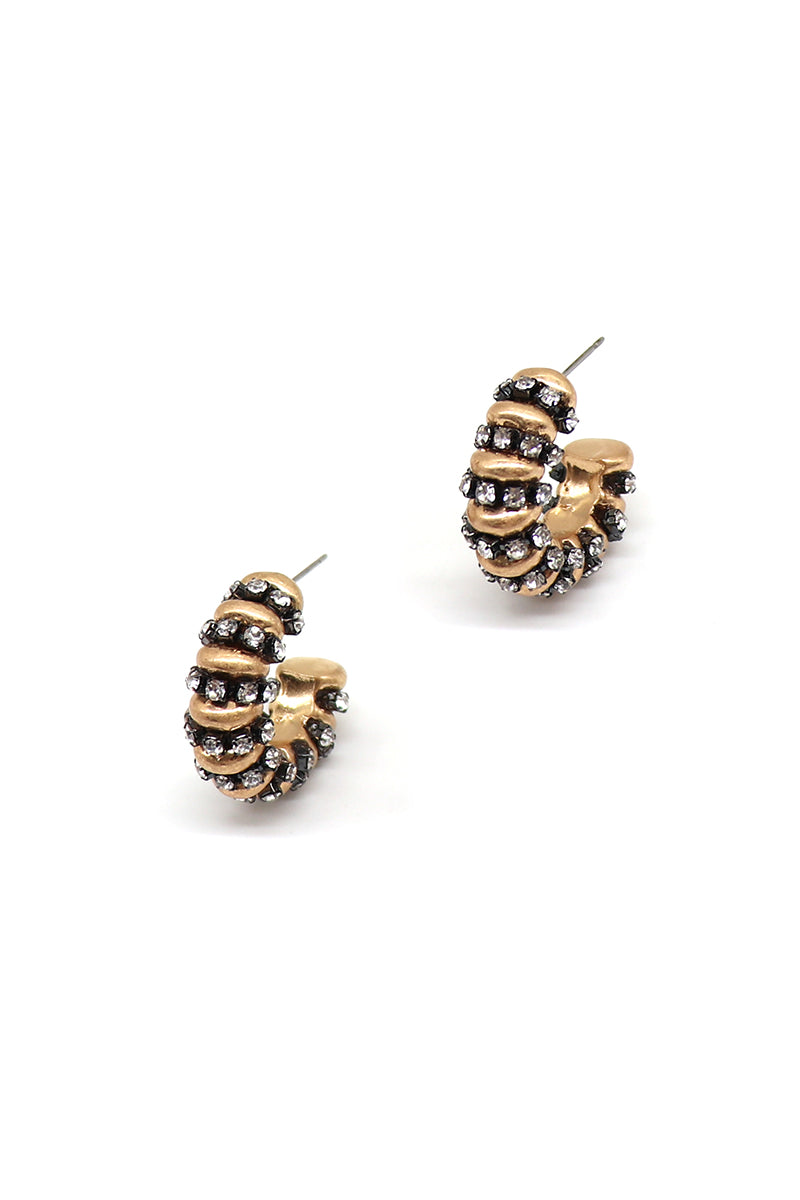 Volume Round Rhine Stone Titanium Hoop Earrings