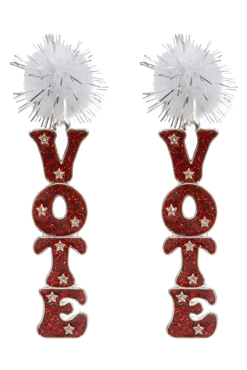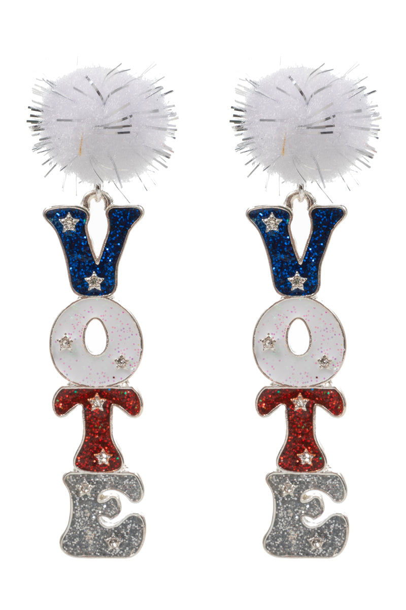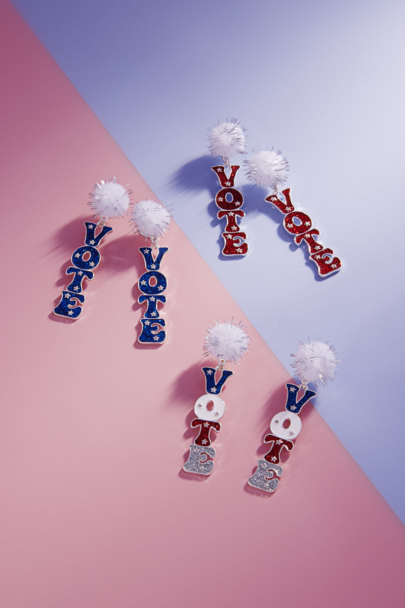 Vote Shaped Enamel W Metalic Pompom Post Earrings