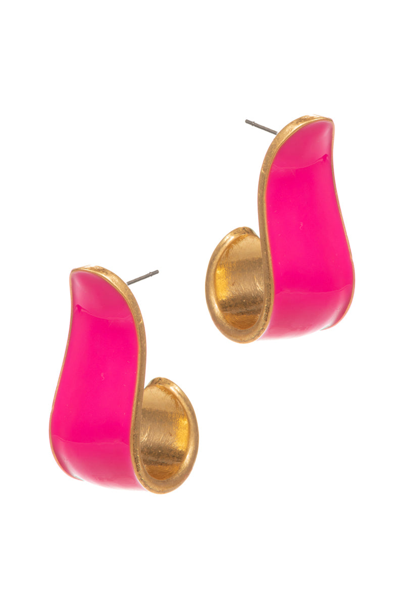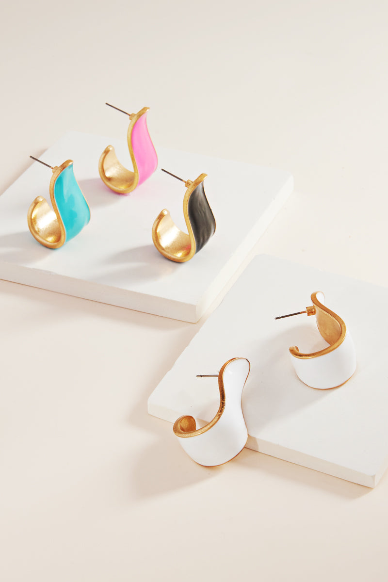 Featuring a unique wavy shape and glossy enamel finish, these earrings add a touch of modern elegance to any ensemble. Made with durable materials, they are perfect for daily wear and are hypoallergenic for sensitive ears.