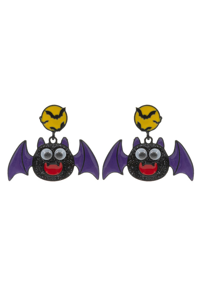Halloween Bat W Googly Eye Titanium Post Earrings