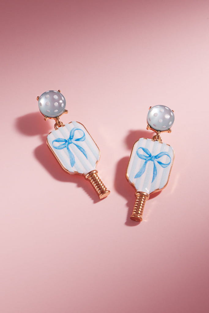 Sports Pickleball Enamel Rhinestone Post Earrings