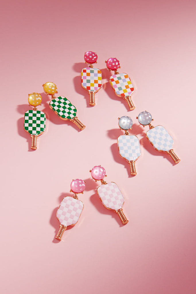 Sports Pickleball Shimmery Faux 2Set Post Earrings