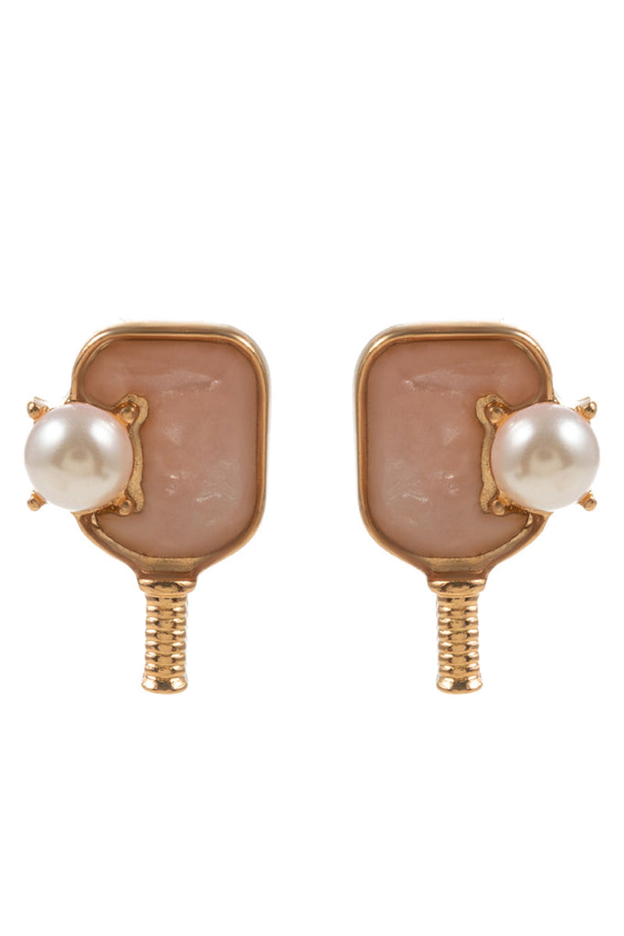 Sports Pickleball Shimmery W Pearl Post Earrings