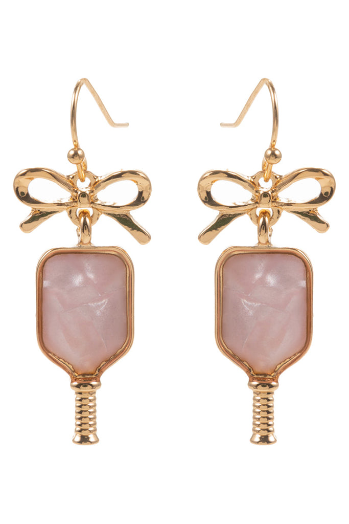 Sports Pickleball Shimmery Paper Bow Hook Earrings