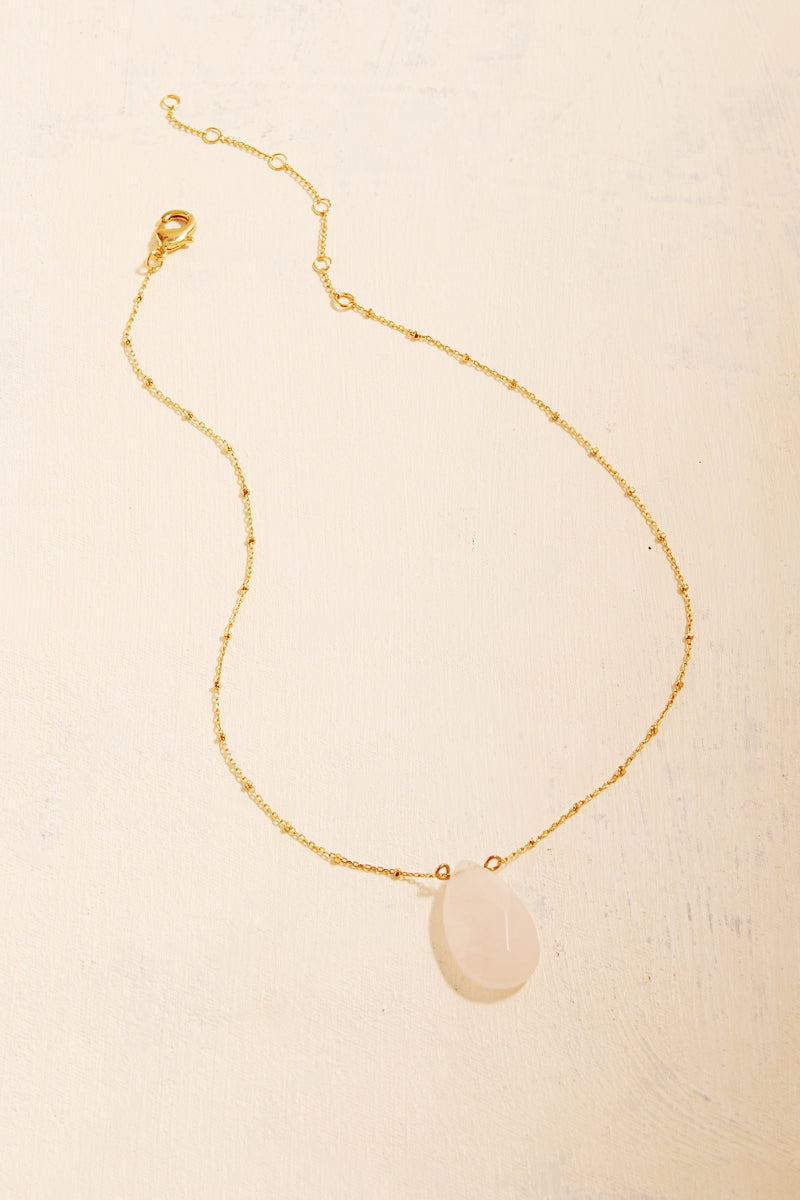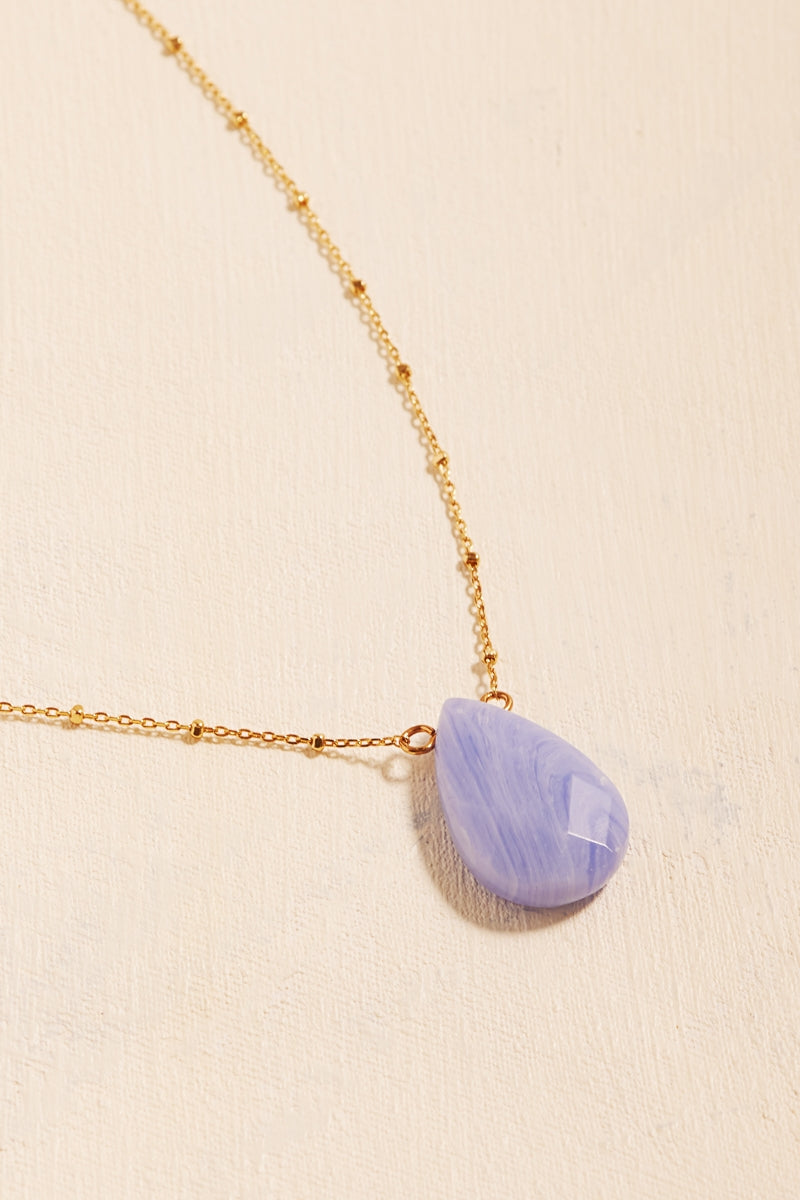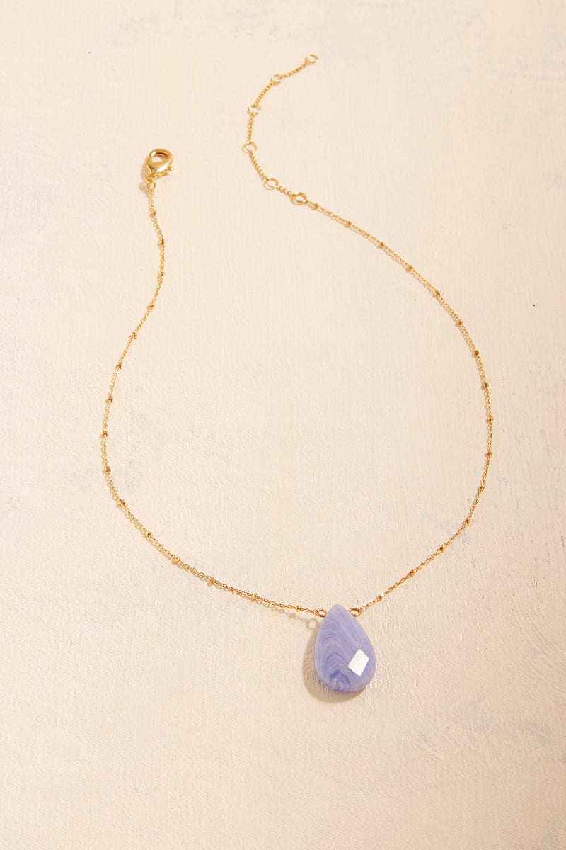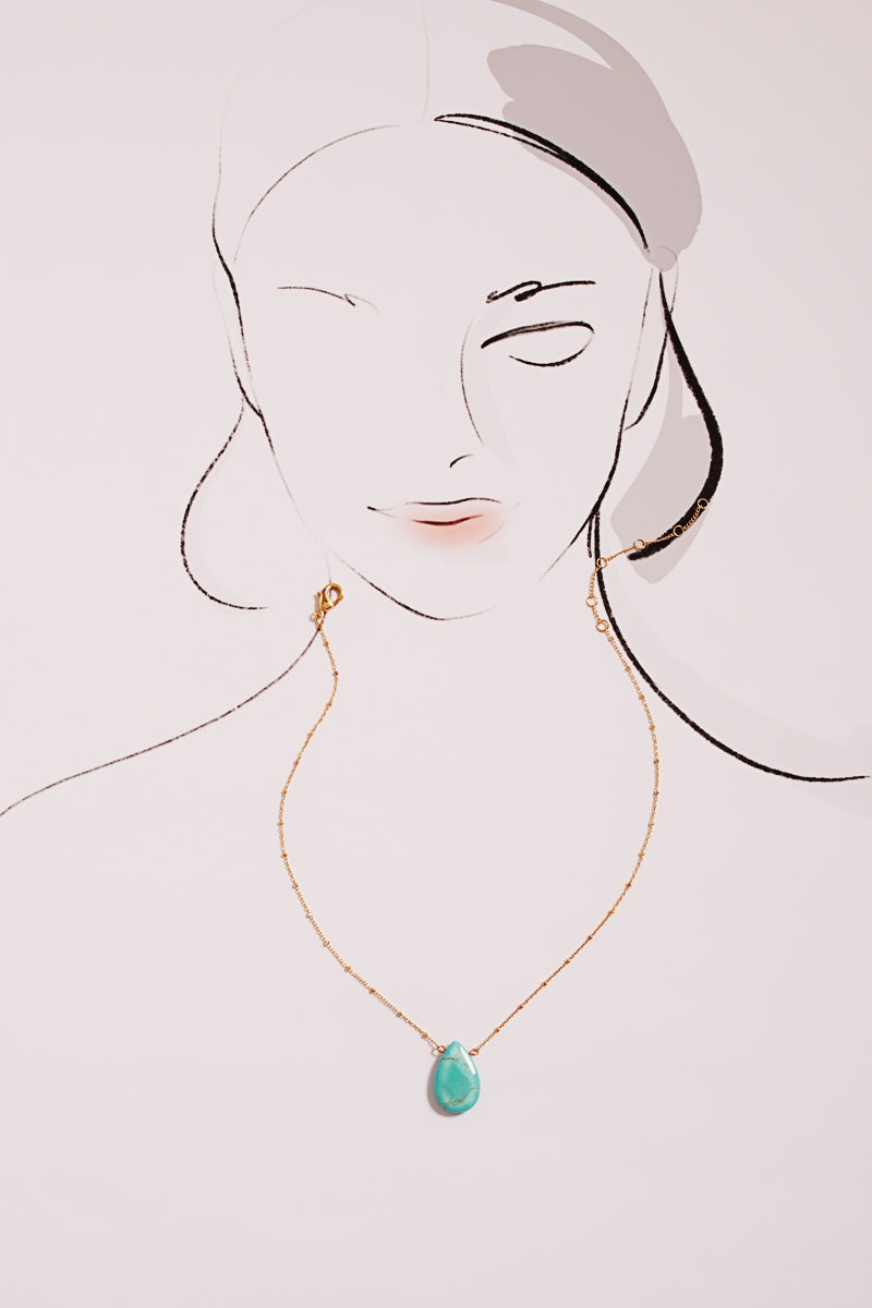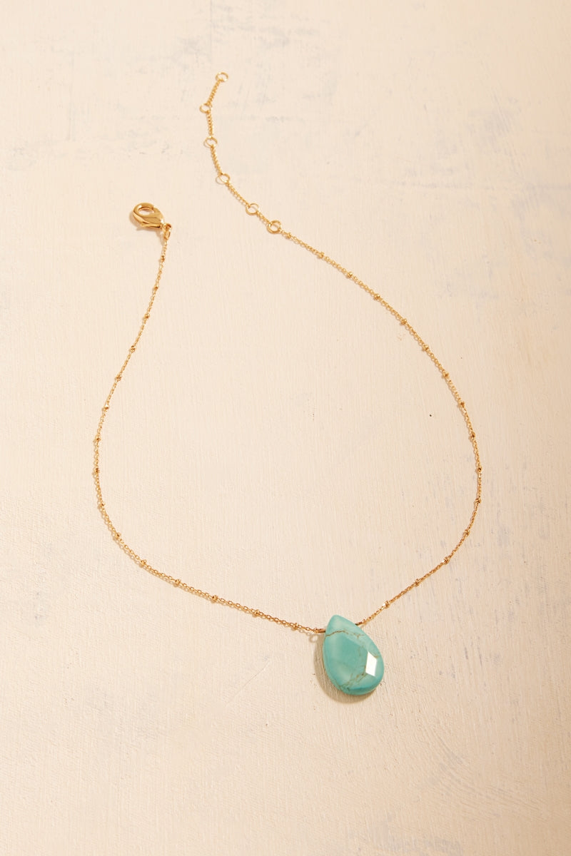 18K Gold Plate Brass Chain Teardrop Stone Necklace