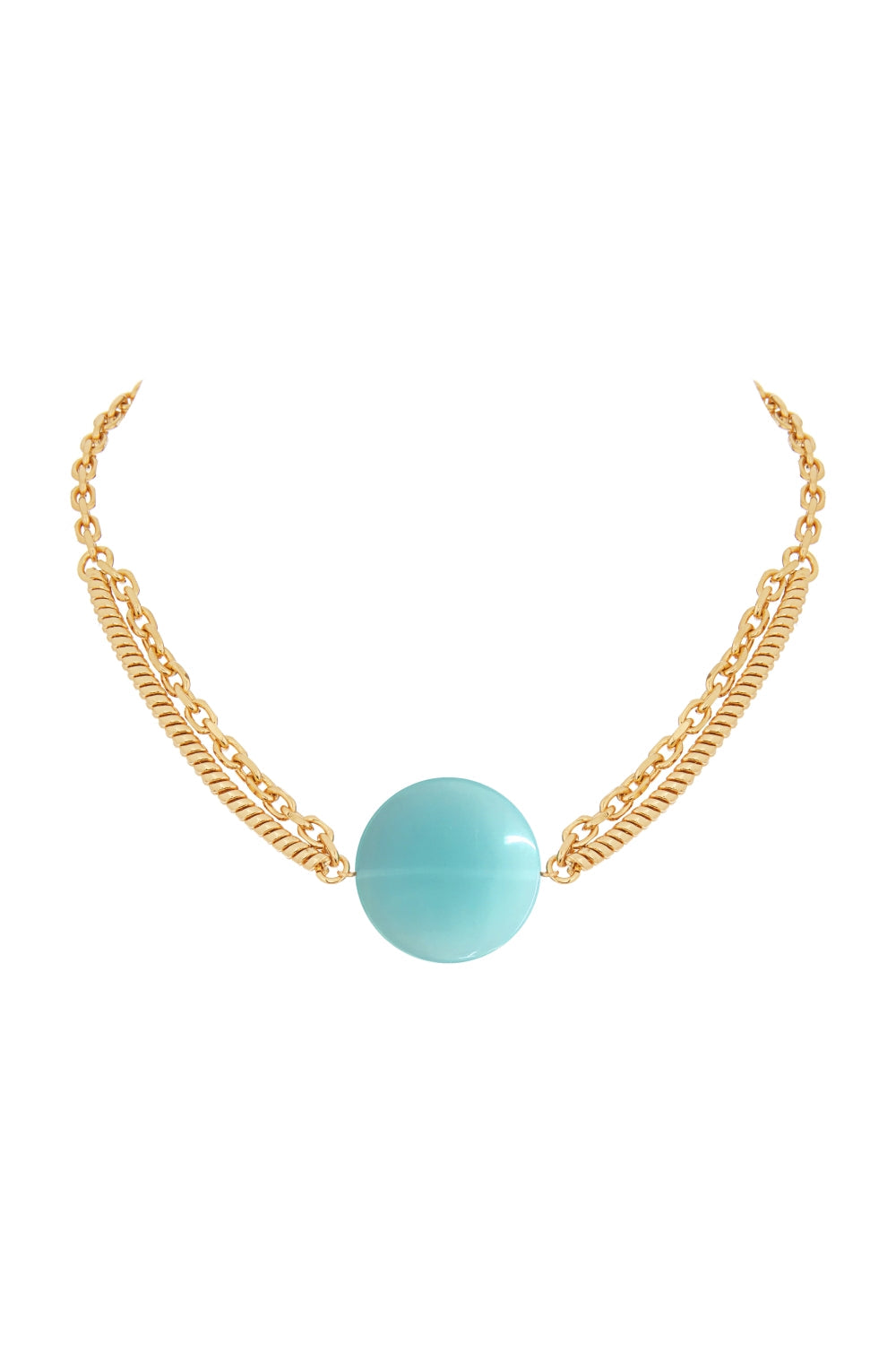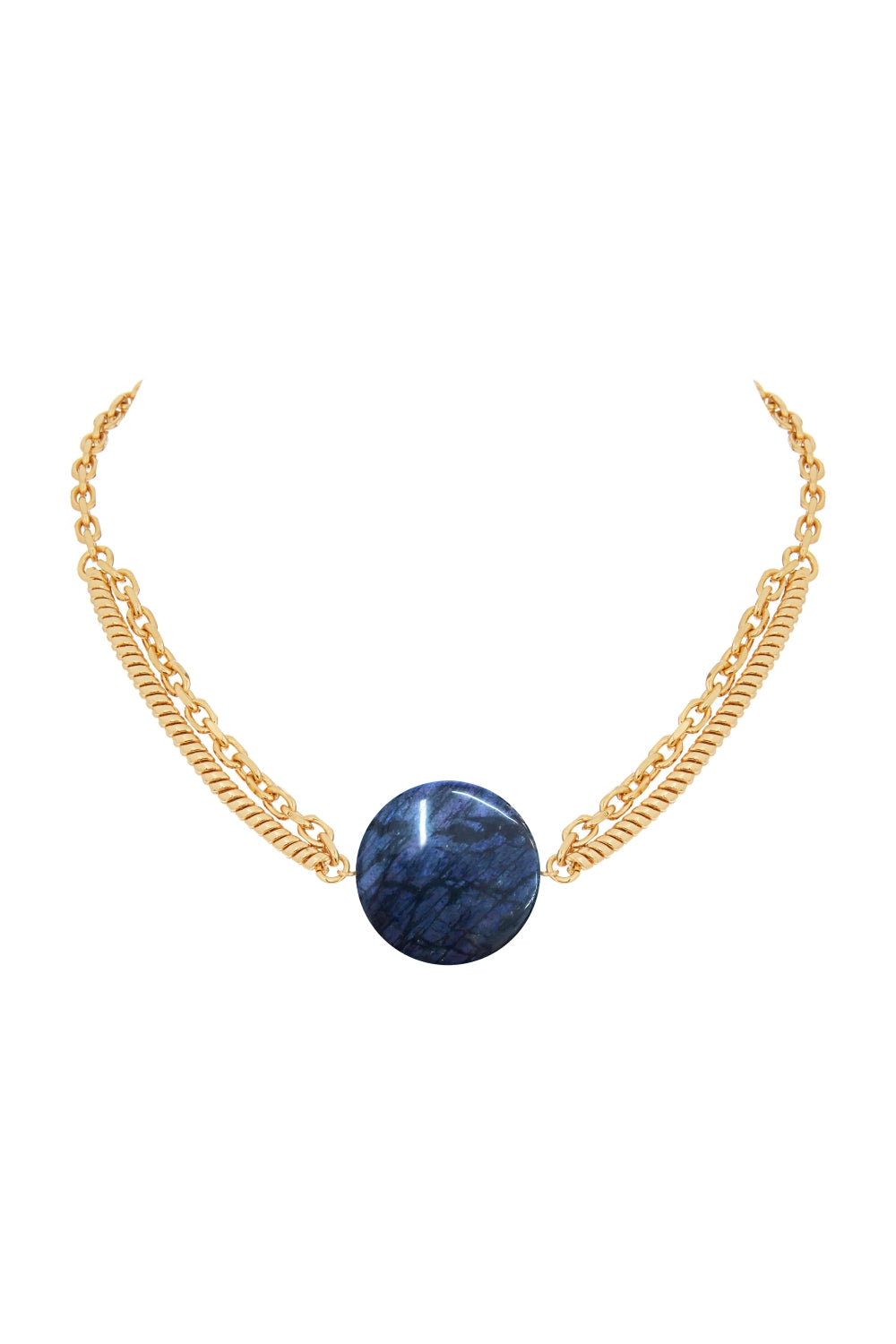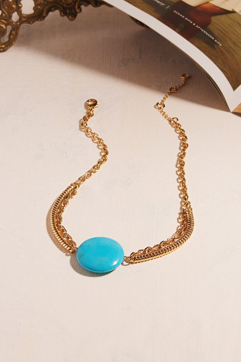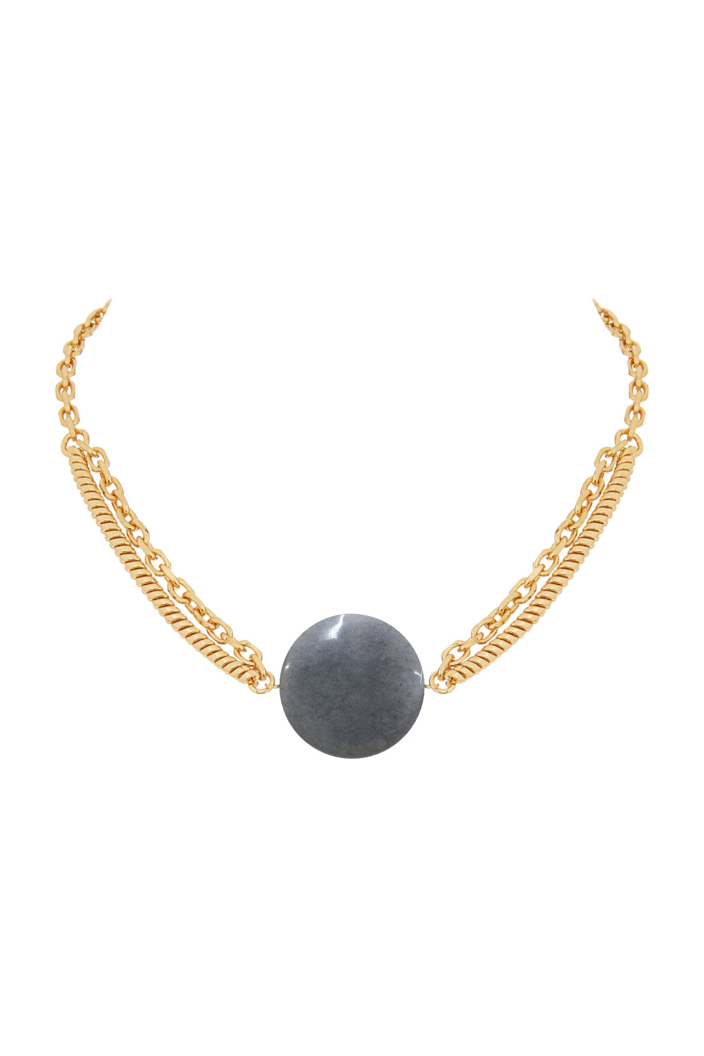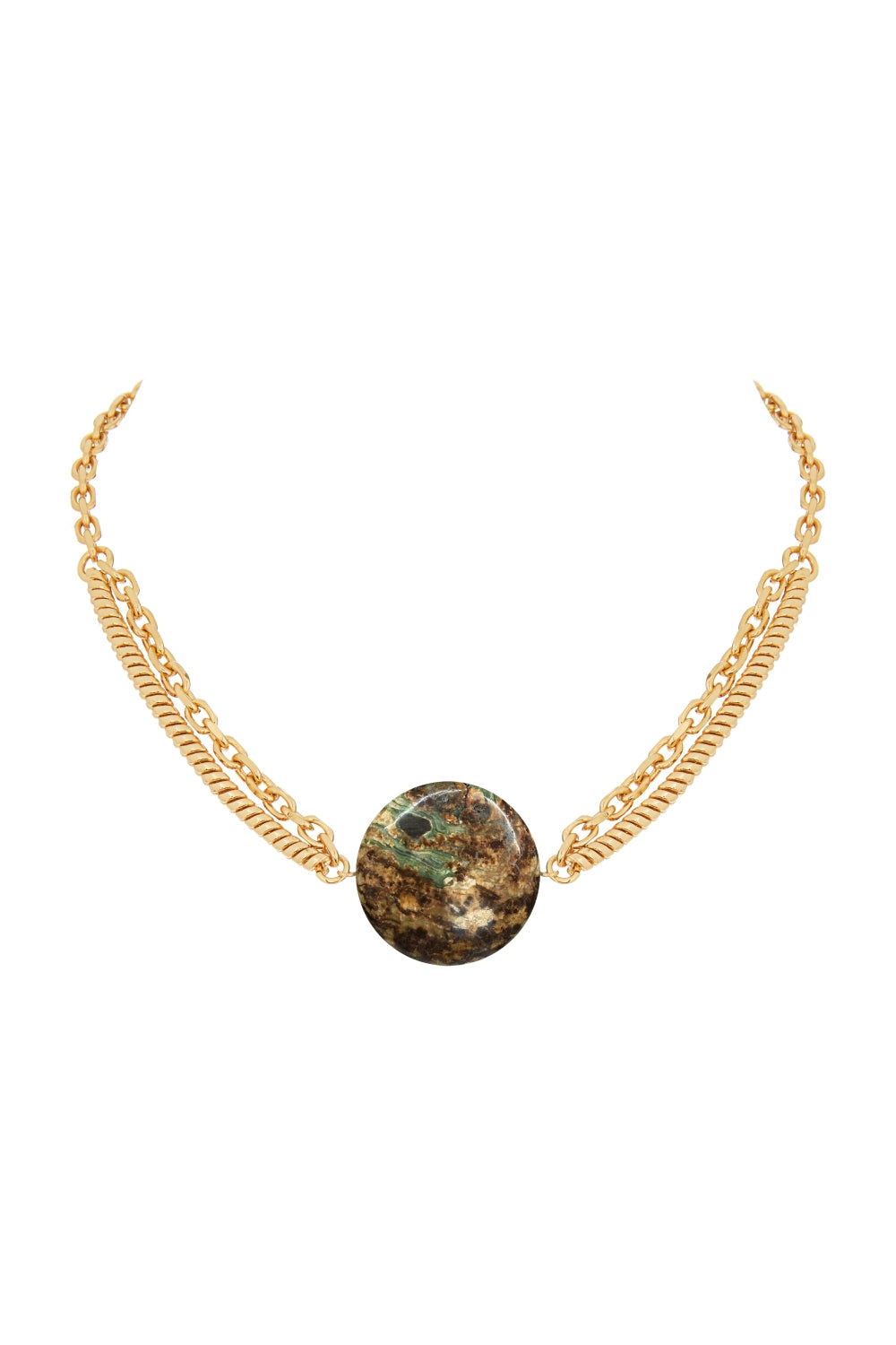 Discover elegance with our 18-inch 18K gold-plated brass chain necklace, adorned with a stunning 35mm smooth round stone. This short necklace is perfect for adding a touch of sophistication to any outfit, whether for a casual day out or a special occasion.
