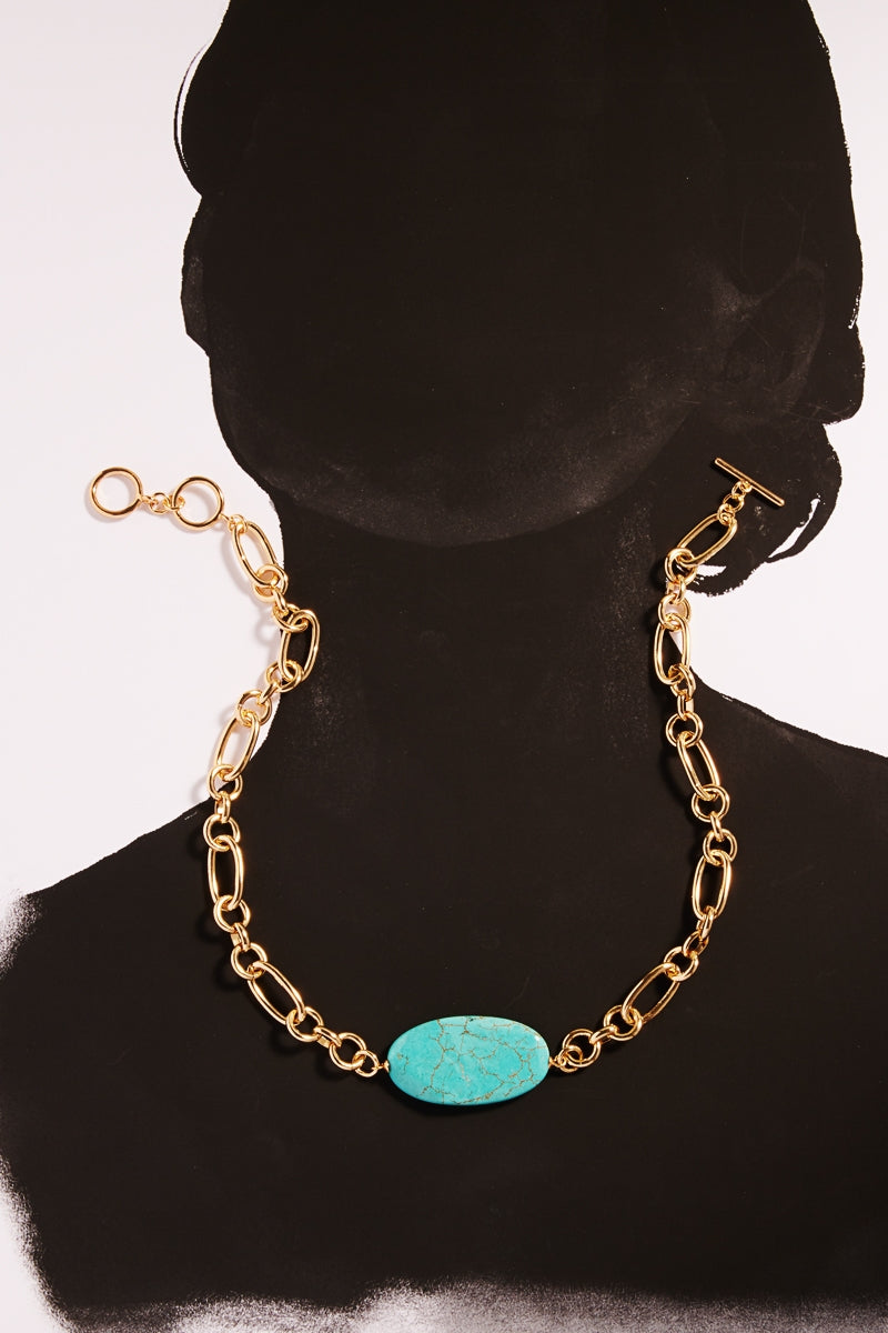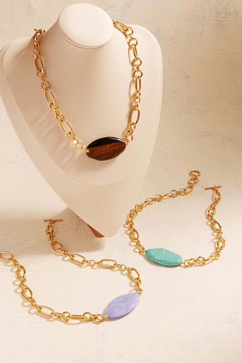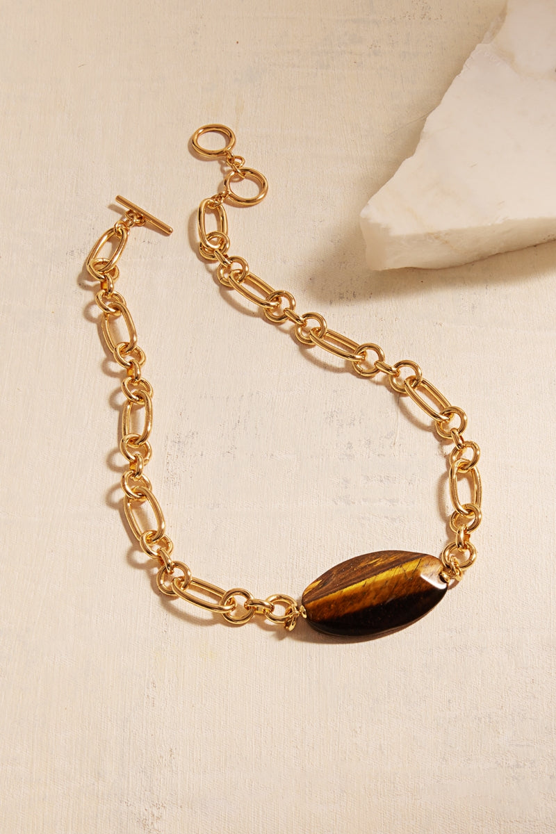 Experience elegance with our 18KT gold plated brass chain necklace. The free form black lace stone adds a unique touch and pairs perfectly with any outfit, making it a versatile accessory. The 18 inch length ensures a comfortable fit for all. Elevate your style with this short necklace.