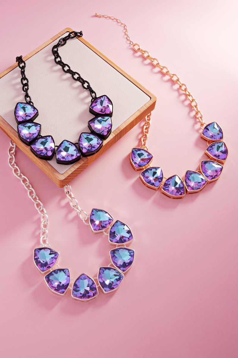 7Irregular Shaped Glass Rhine Stone Short Necklace