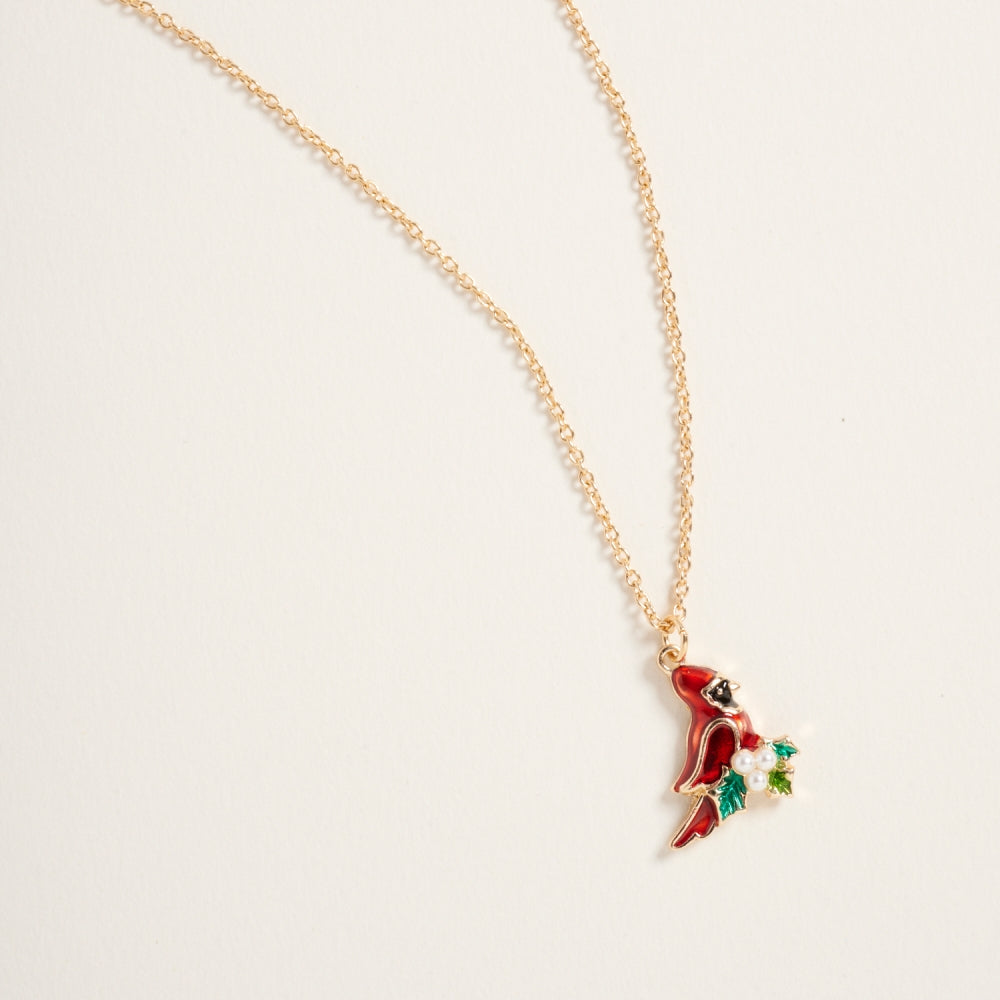 Christmas Cardinal Holly Pearl Pendant Necklace