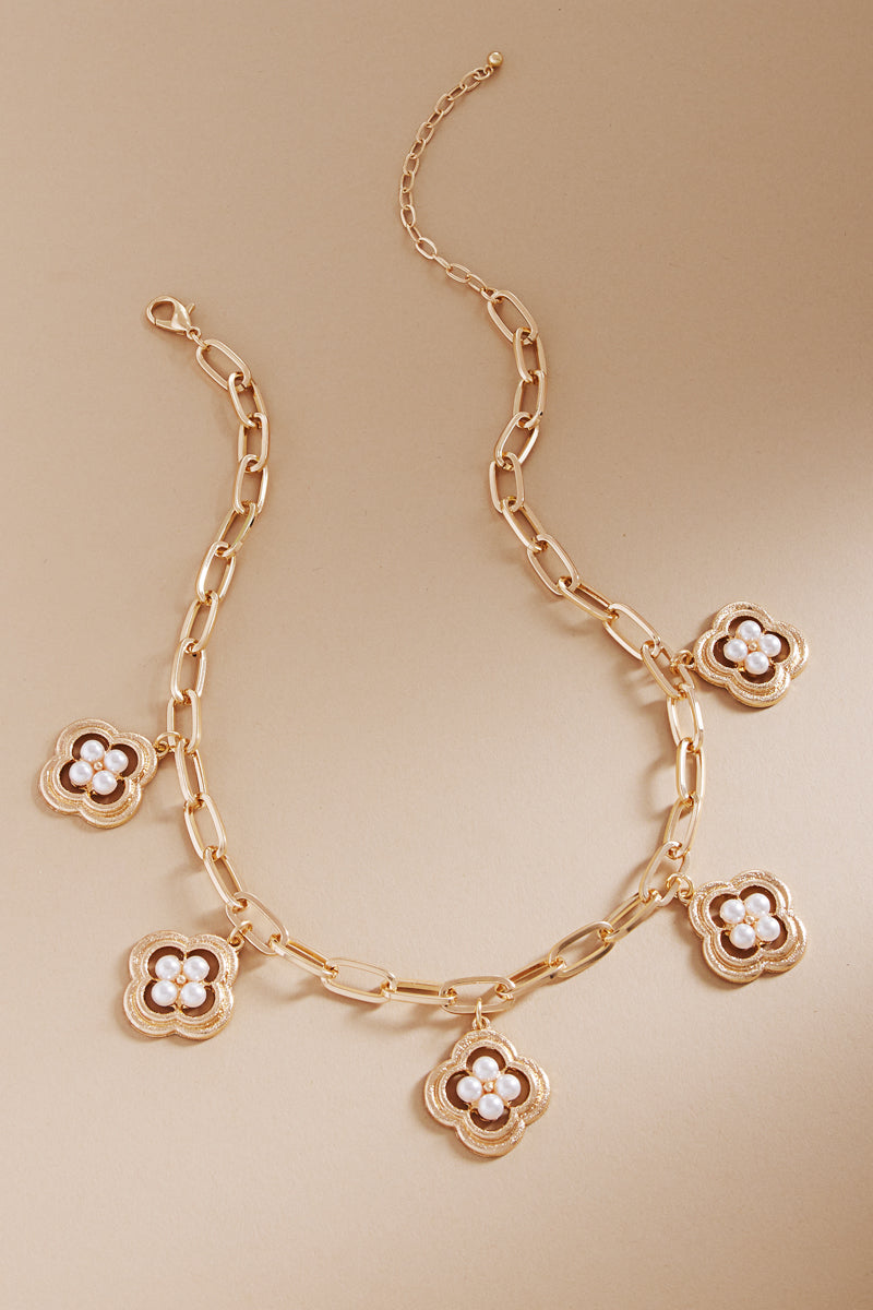 Clover Shaped Metal Short Necklace
