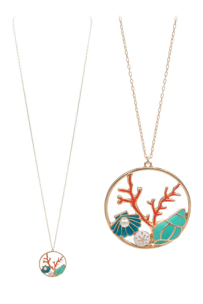 Coral Shell Pendant Summer Sea Life Long Necklace