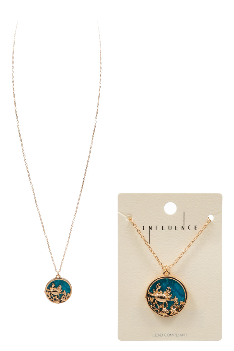 This 17" necklace features a stunning coral design with a crab pendant. Crafted with high-quality materials, this necklace is perfect for everyday wear.