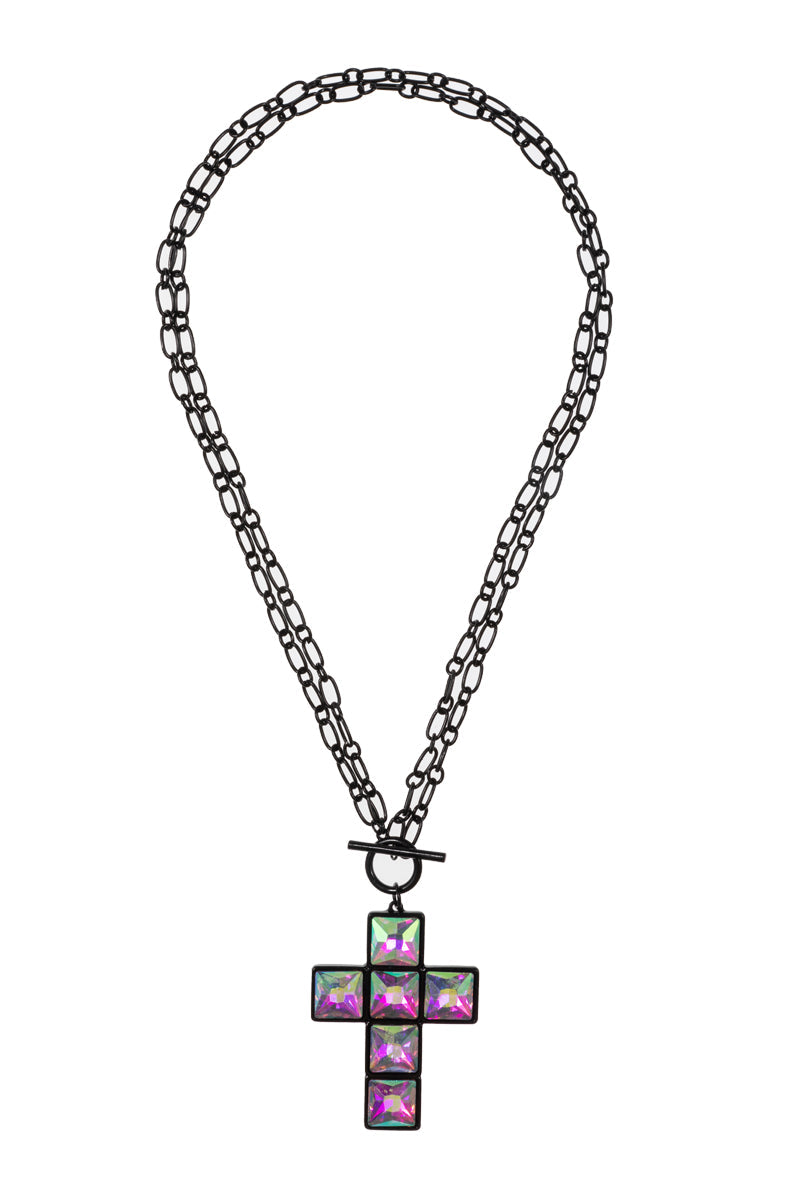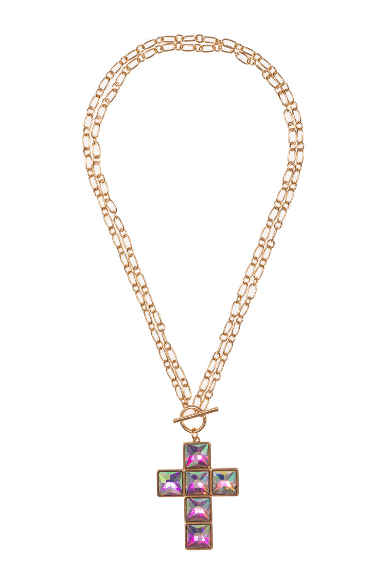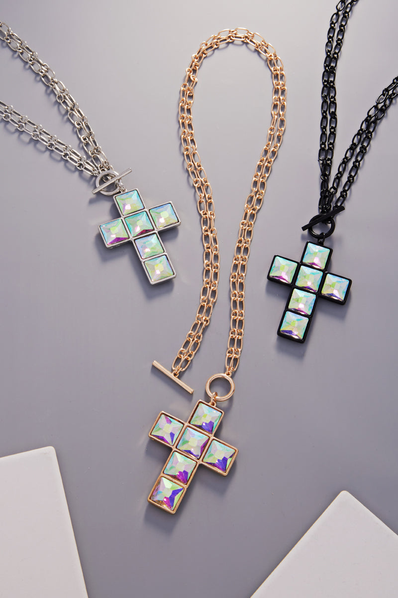 Cross Rhine Stone Multiway Pendant Short Necklace