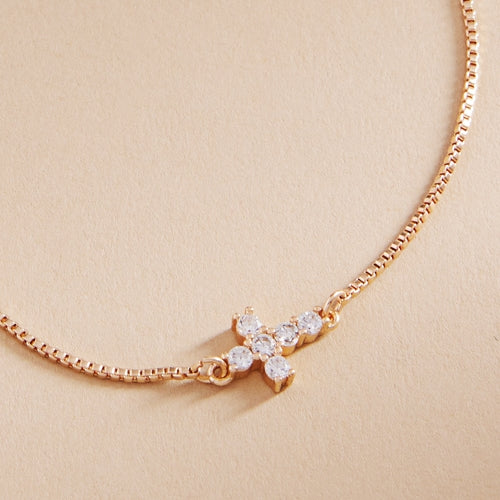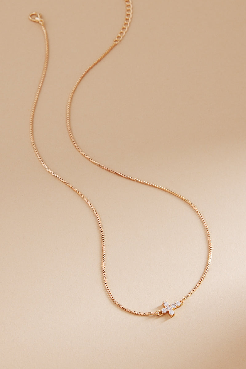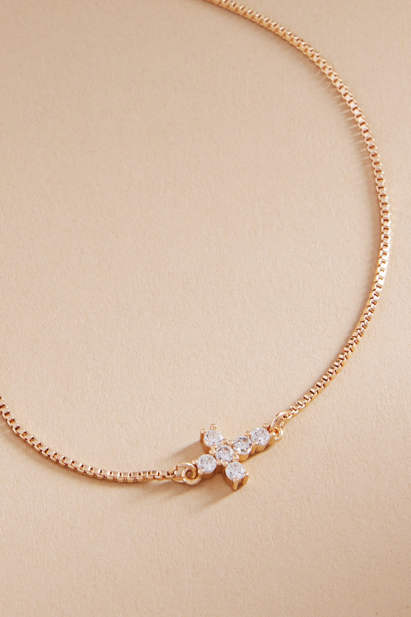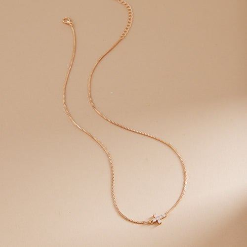 Cross Shaped Brass With Cz Short Necklace