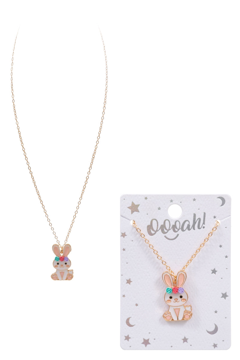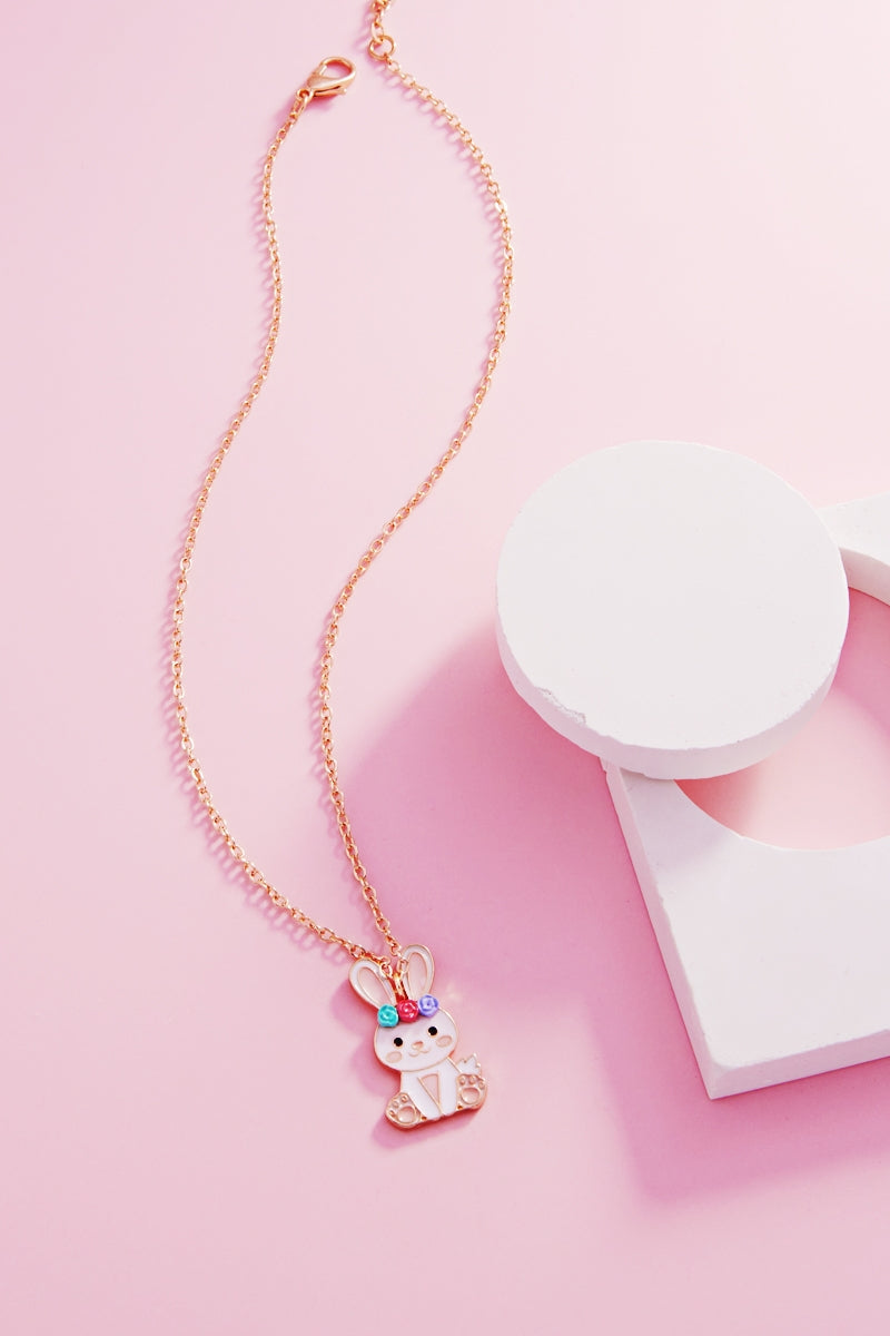 This 14 inch bunny necklace features a beautiful flower crown and a short neck length, perfect for adding a touch of whimsy and charm to any outfit. Crafted with care and attention to detail, this necklace is sure to bring joy and delight to any animal lover.