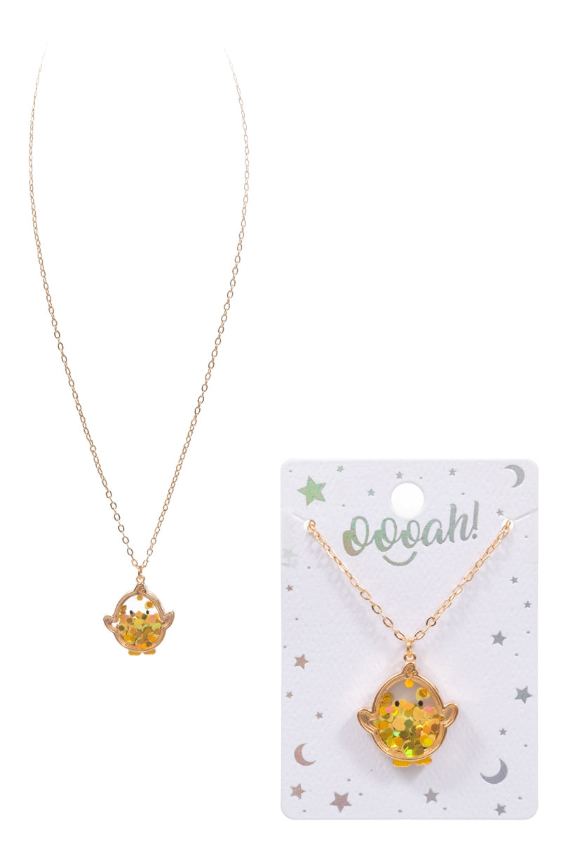 Easter Chick Shaped Glitter Shaker Short Necklace
