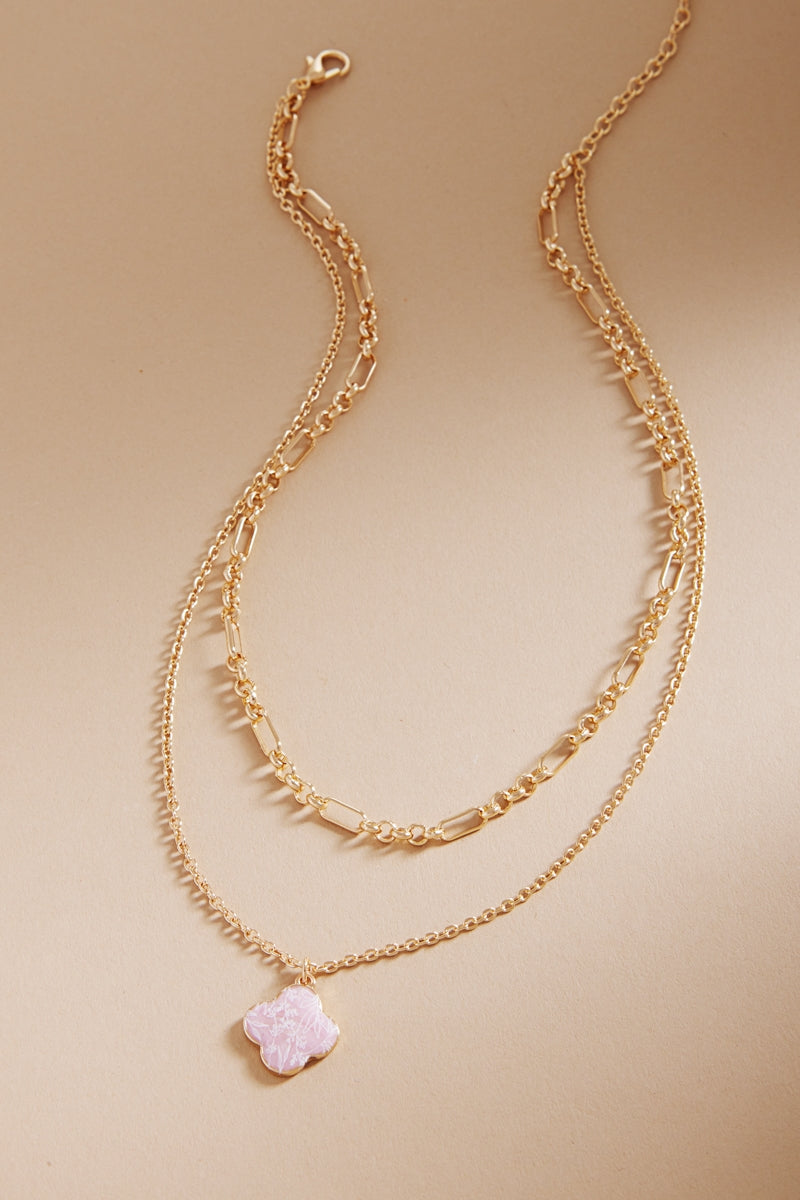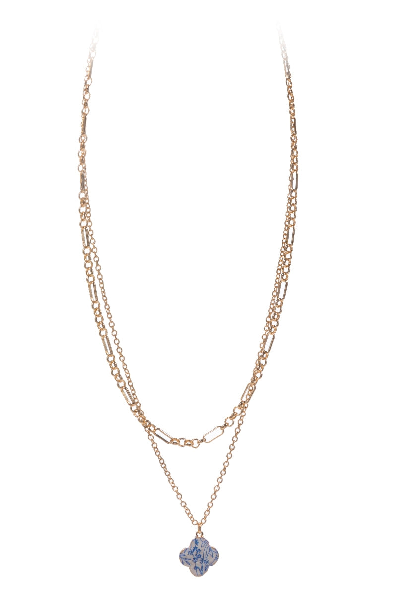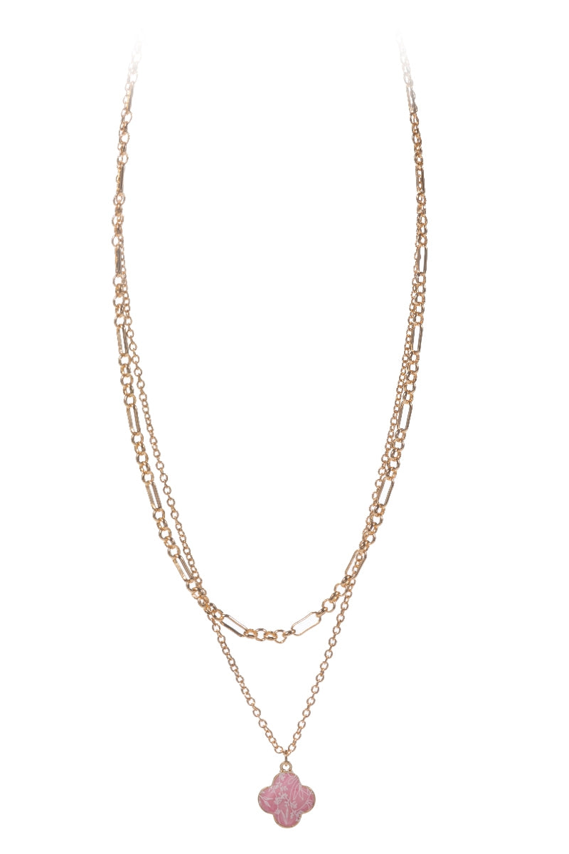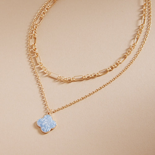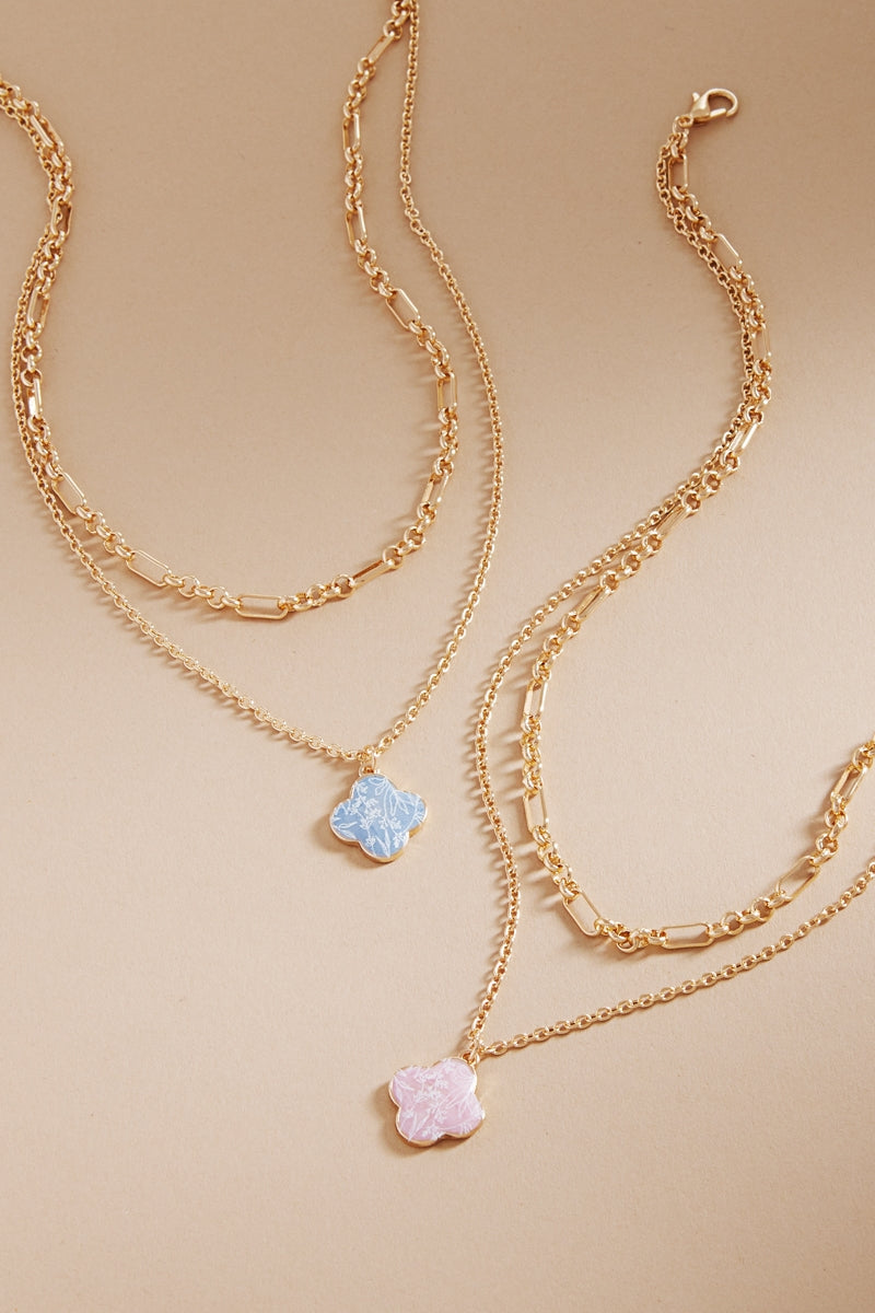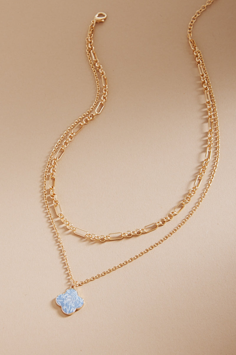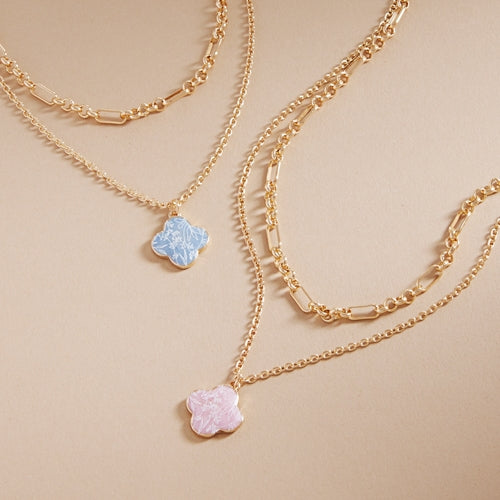 Floral Print Enamel Quatrefoil Charm 2Layered Necklace