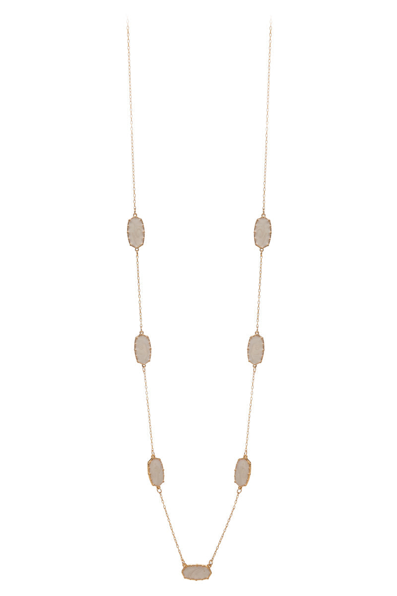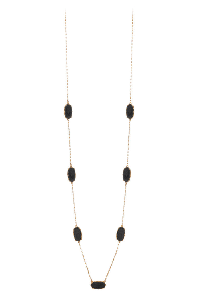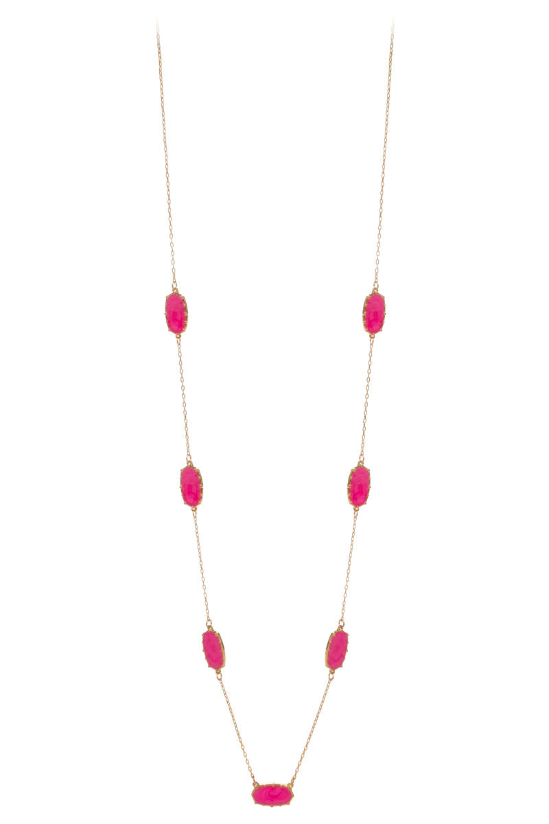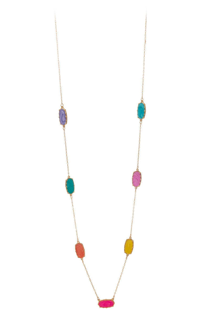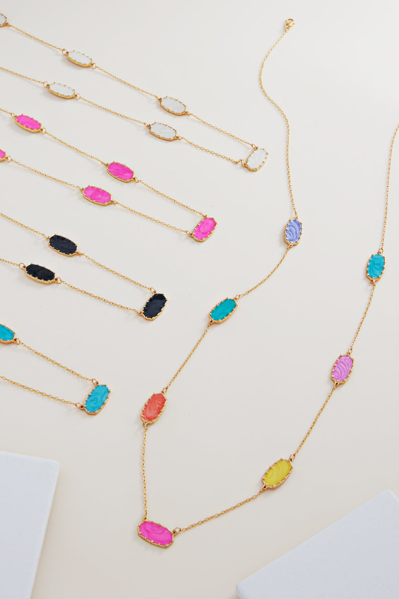 This 34 inch hexagon shaped enamel station long pendant long necklace is an elegant addition to any outfit. The unique hexagon design adds a modern touch while the enamel finish gives a pop of color.