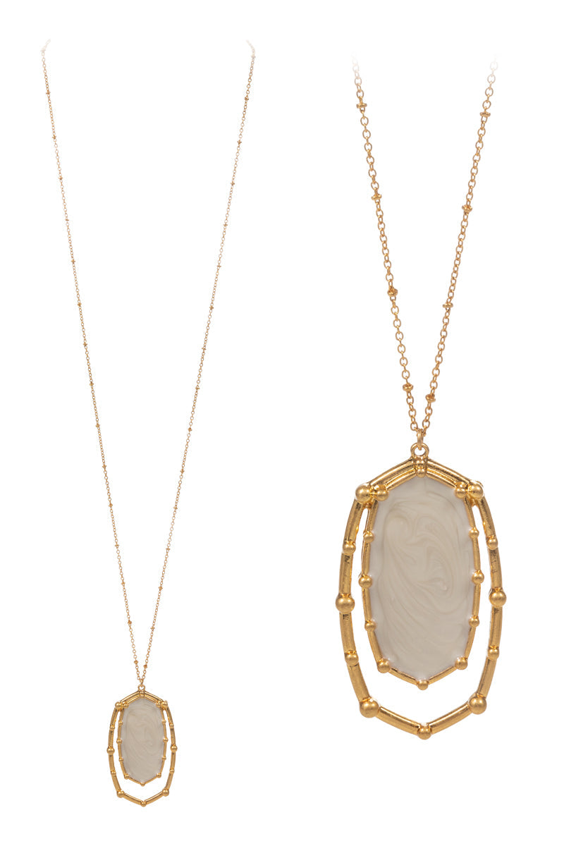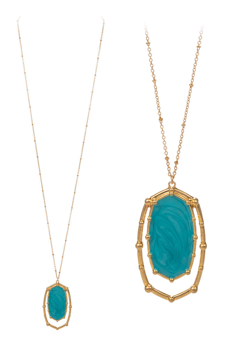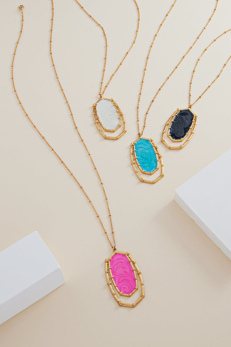 This 30 inch hexagon shaped enamel station long pendant necklace is a unique and stylish accessory. With its long length, it can be easily layered with other necklaces to create a trendy look.