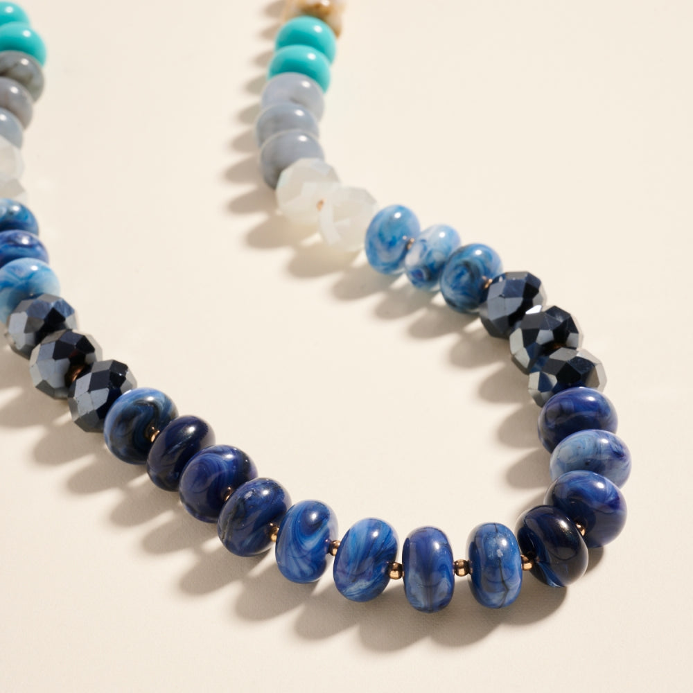Crafted with oval resin disks, this beaded necklace showcases a graceful ombre gradient and marbled detailing for timeless appeal.