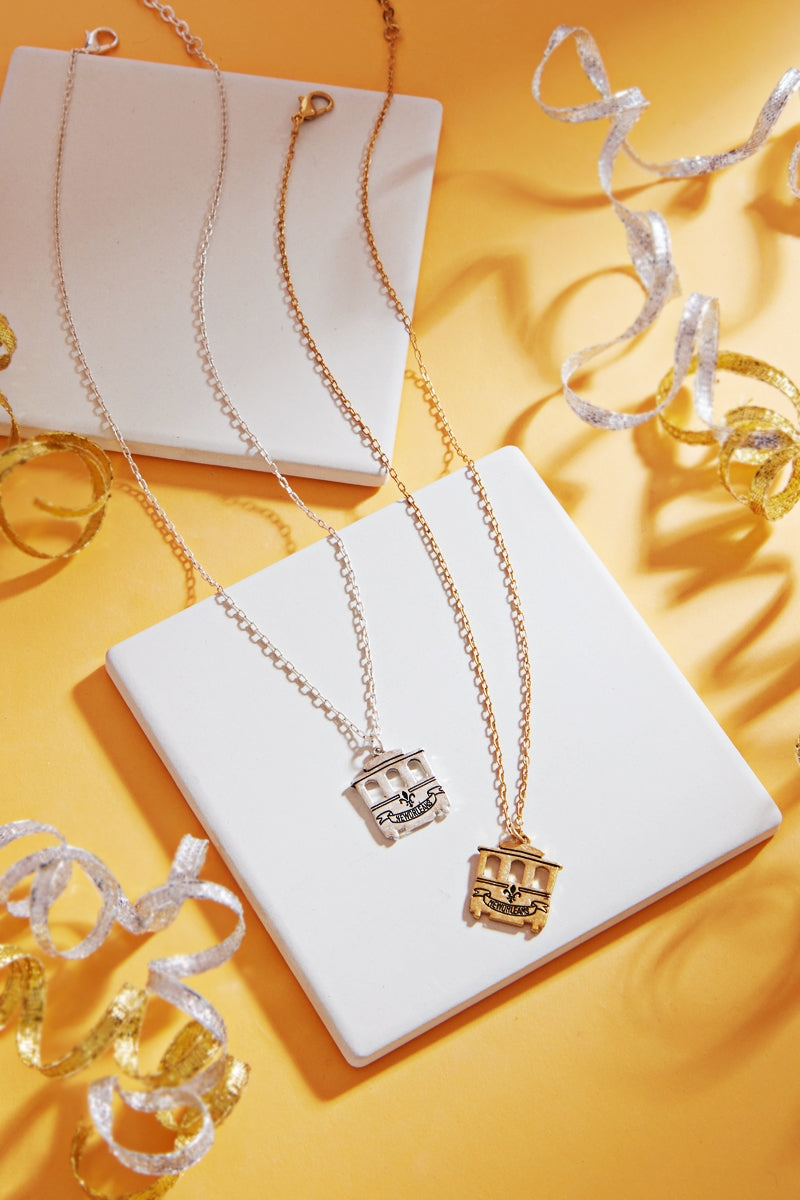 Mardi Gras Trolly Car Shaped Metal Short Necklace